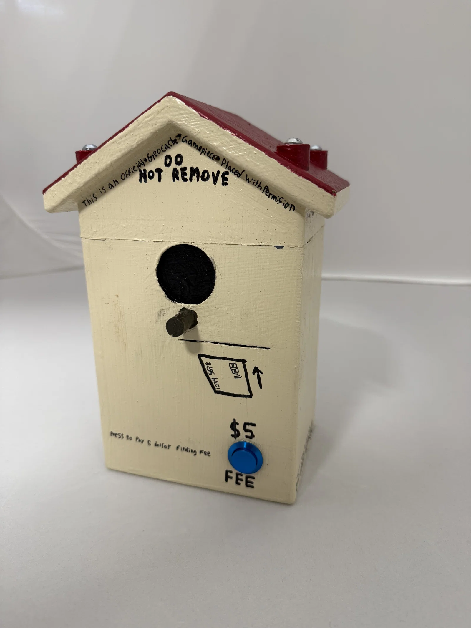 Một mẫu hộp Geocache hình nhà chim cực kỳ độc đáo và vui nhộn. Điểm đặc biệt của thiết kế này là người chơi cần phải chèn một chiếc thẻ tín dụng vào khe thì mới có thể mở được hộp. Mời bạn tải hướng dẫn đi kèm để bắt đầu in ấn và lắp ráp.