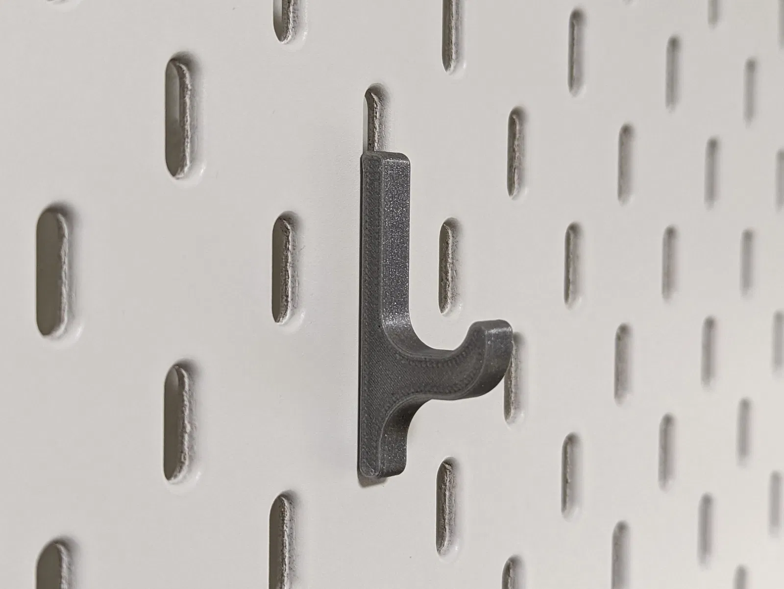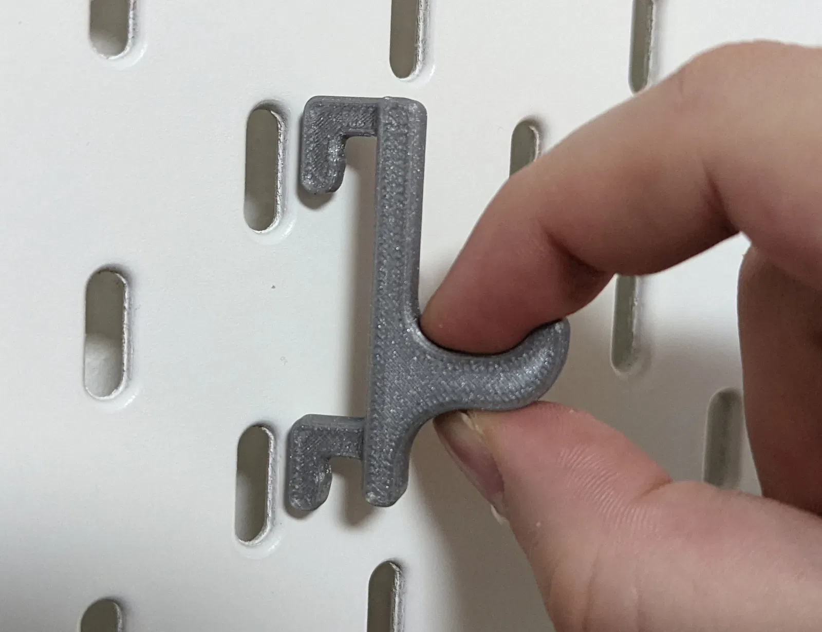 Đây là các mẫu móc treo mình tự thiết kế dựa trên cảm hứng từ “Pavel”. Các mẫu cũ hoạt động không được tốt lắm, chúng bị quá chặt và kiểu thiết kế “một móc, một chốt” không hiệu quả, thậm chí mình còn làm trầy xước bảng Skadis ở vài chỗ khi tháo chúng ra.