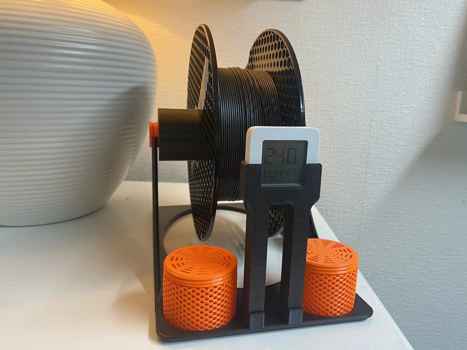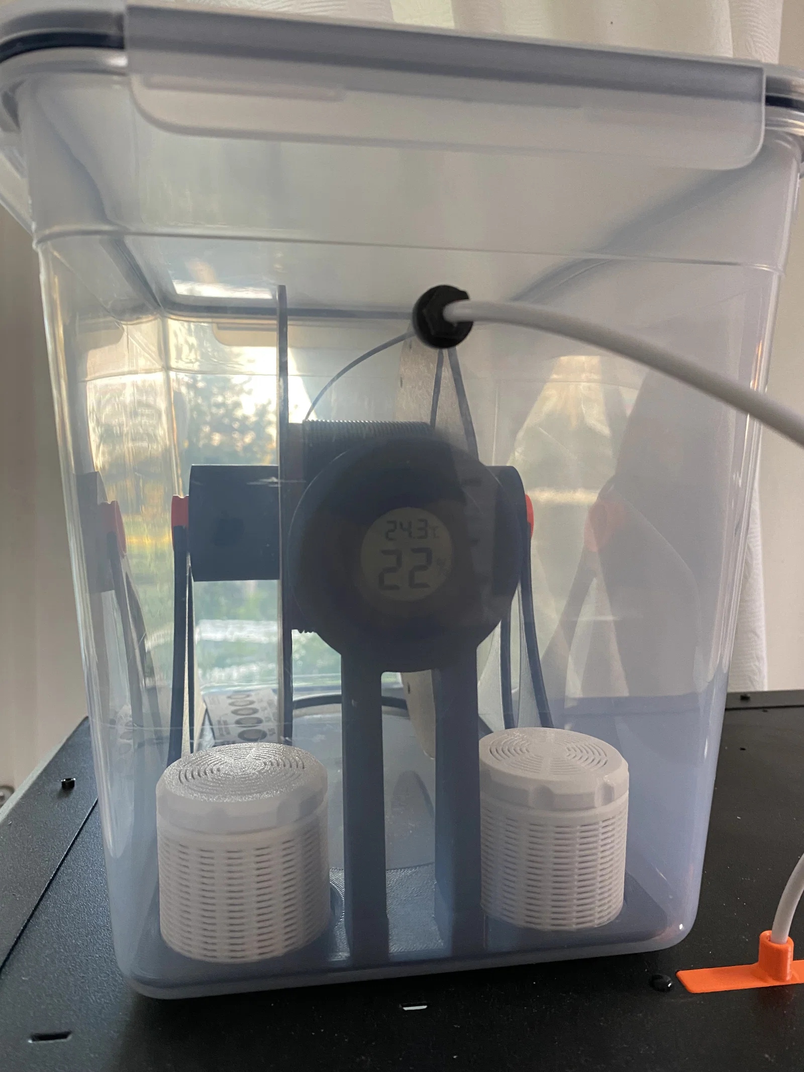 Tận dụng hộp IKEA 365+ 10.6L làm drybox lưu trữ nhựa in. Hỗ trợ cuộn nhựa 2kg, tích hợp nhiều loại cảm biến độ ẩm và khay đựng hạt hút ẩm silica gel tiện lợi.