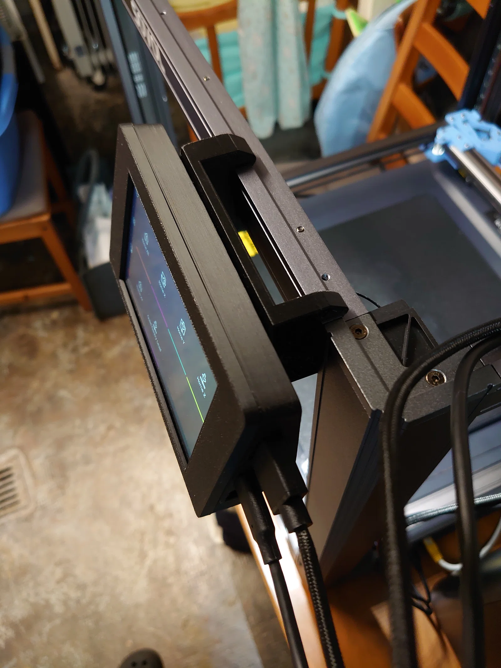 - Độ bền: In với độ đặc (infill) khoảng 30-40% để bộ khung treo màn hình đủ cứng cáp, không bị rung lắc trong quá trình máy vận hành.