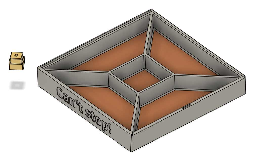 Mang trò chơi board game CAN'T STOP đi khắp nơi với phiên bản hộp du lịch siêu nhỏ gọn 128x128x20mm. Thiết kế tiện lợi, dễ in ấn và cực kỳ thú vị cho những chuyến đi. Tải file STL về in ngay hôm nay!