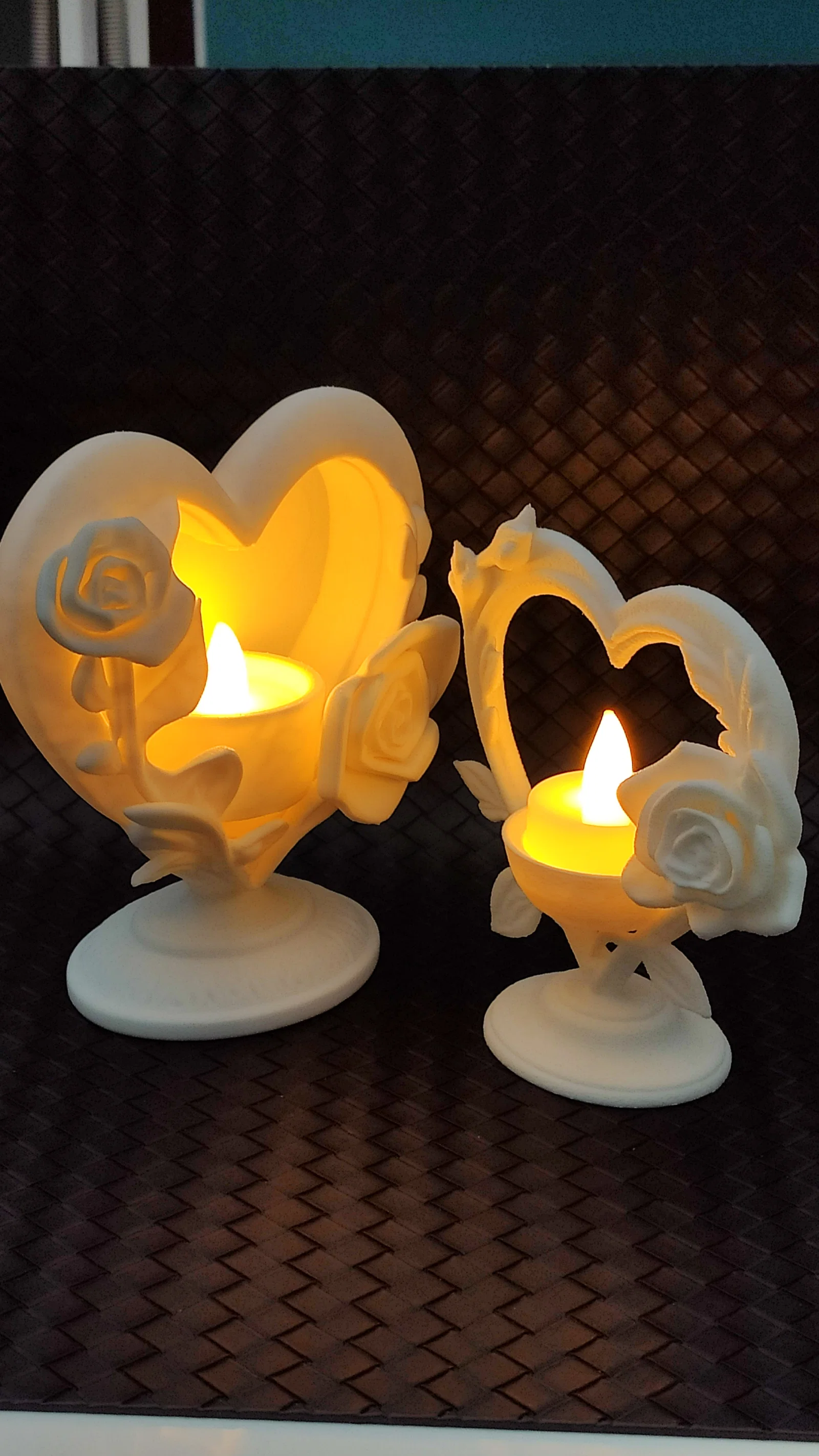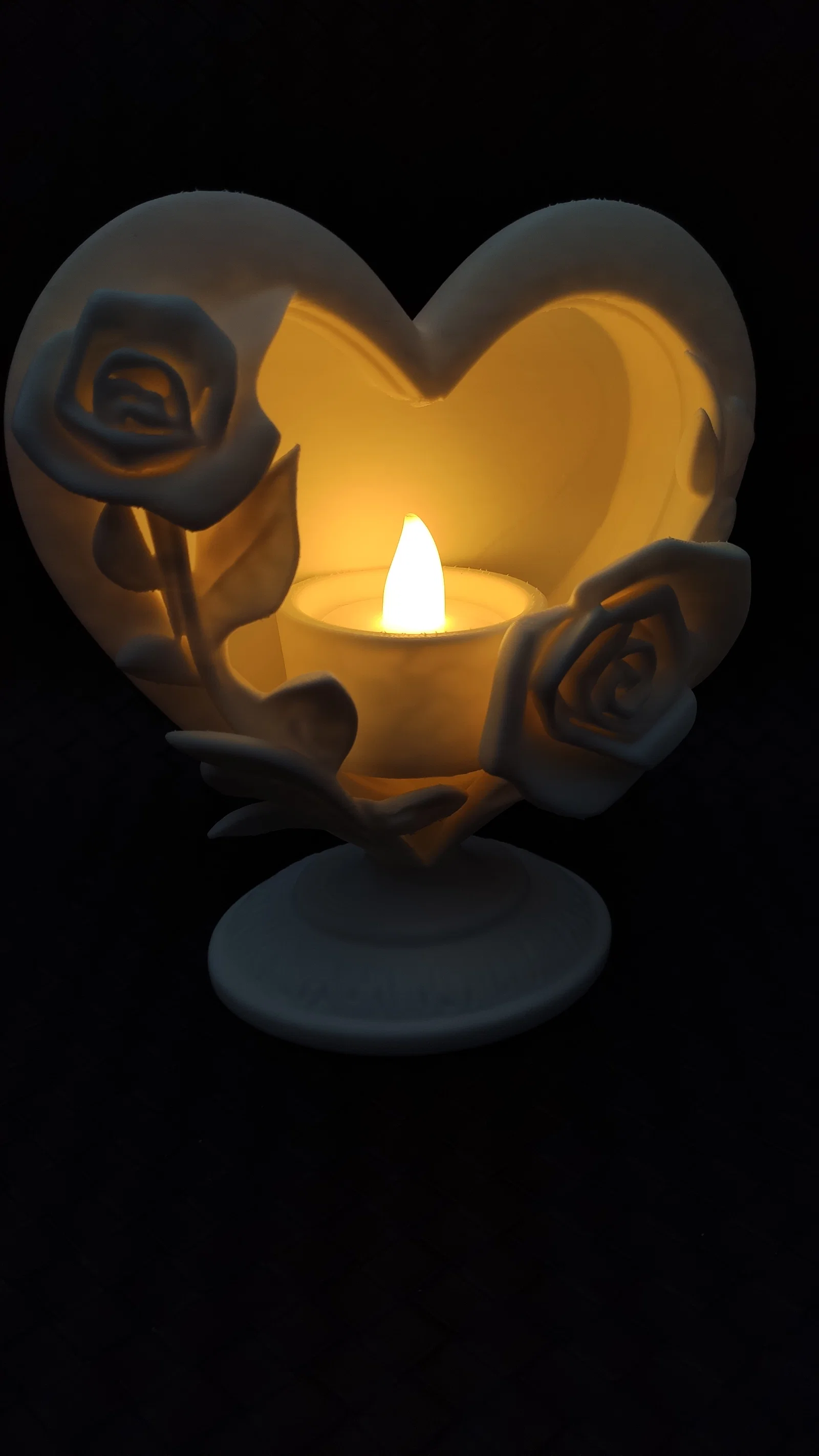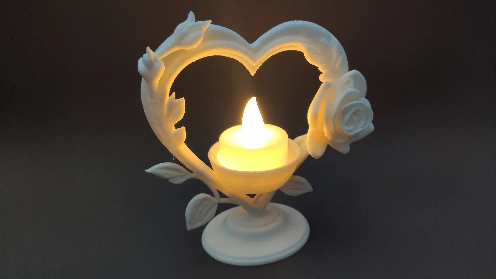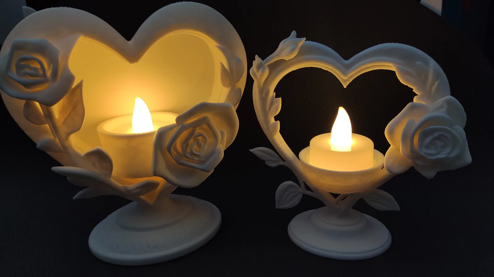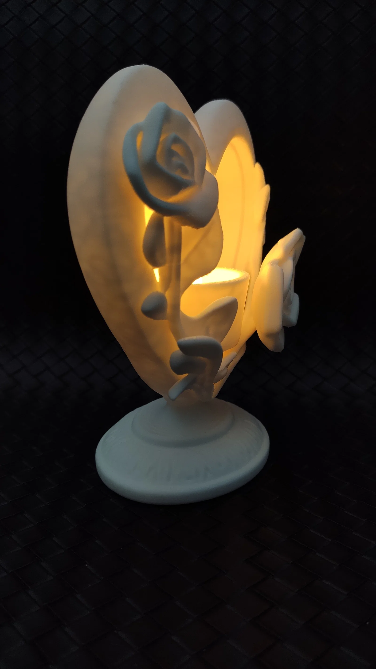 Đây là hai đế nến LED được thiết kế theo hình bông hoa hồng nằm trong trái tim. Phù hợp với loại nến tealight kích thước tiêu chuẩn (đường kính 37 mm), tuy nhiên bạn vẫn có thể tùy chỉnh kích thước theo ý muốn. Cấu hình in gợi ý của tôi (sử dụng nhựa PLA): lớp in 0,16mm / 2 thành tường / 10% gyroid / Tree supports. Hãy cẩn thận khi tháo phần support nhé, vì chúng hơi khó gỡ một chút. #### Rose Flower in a Heart - Frame