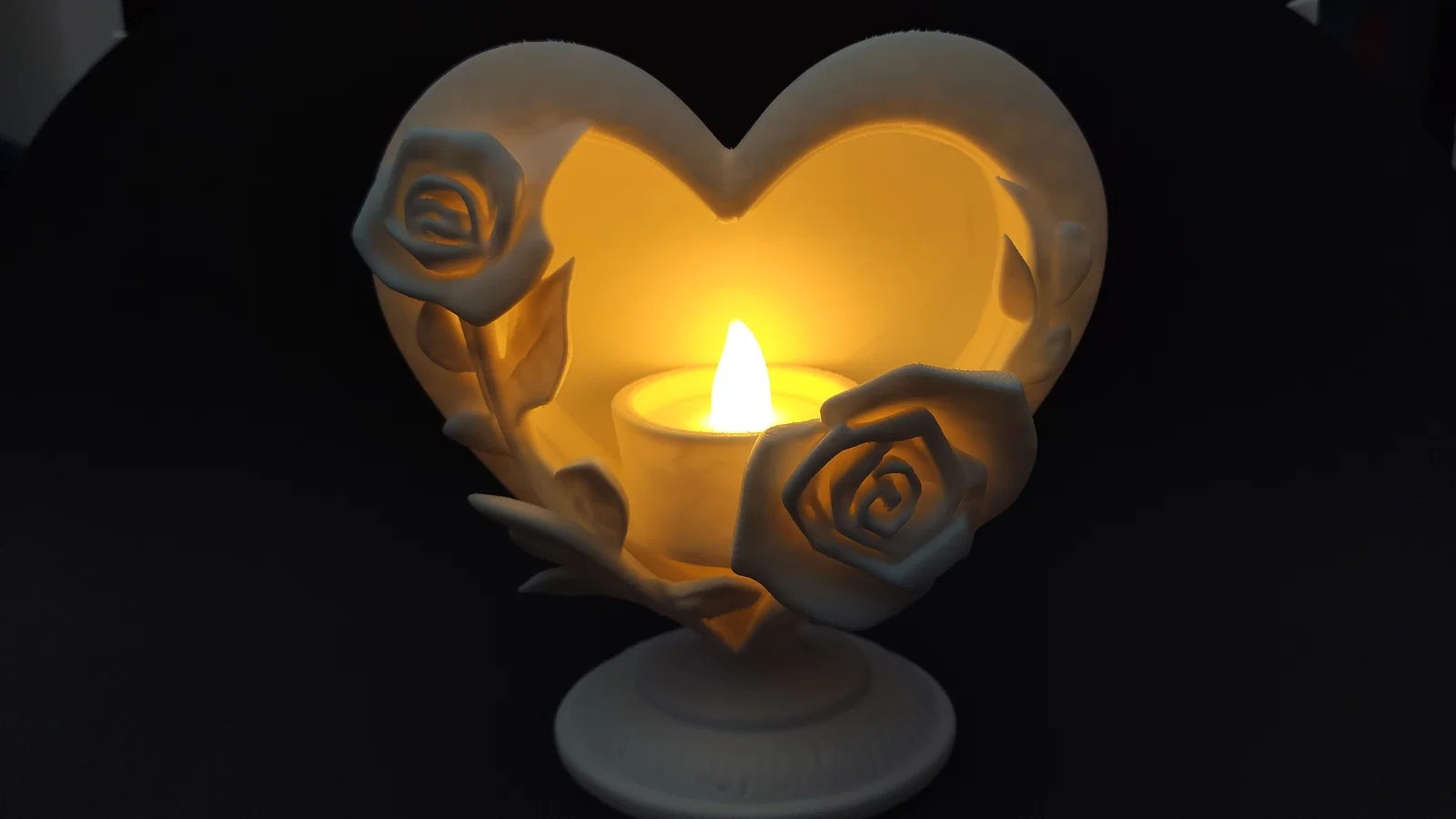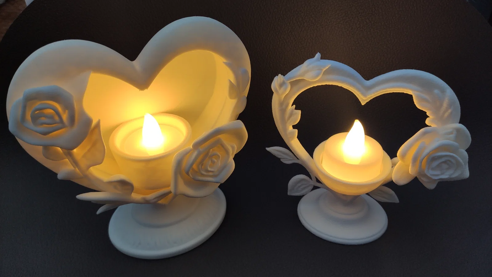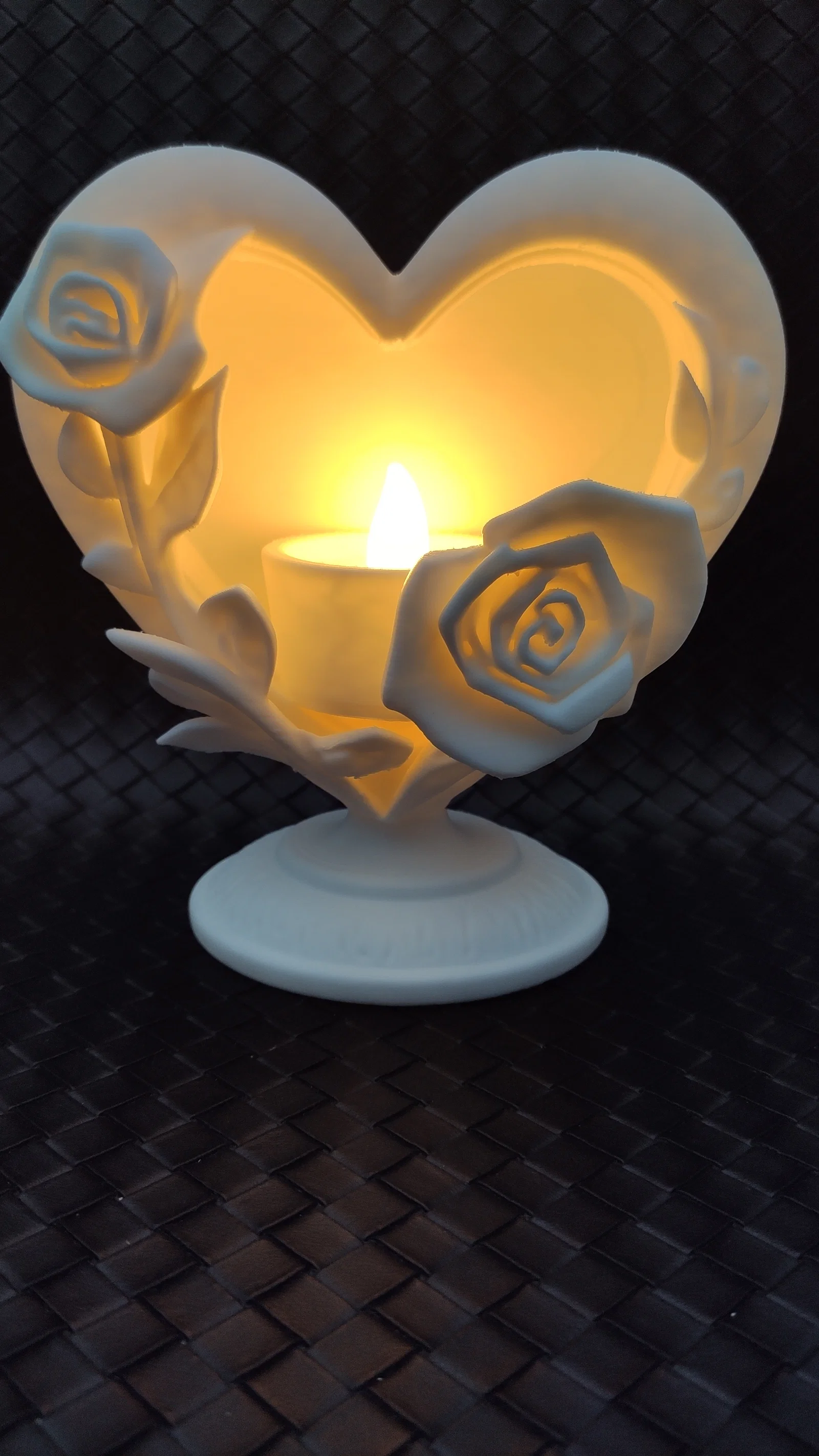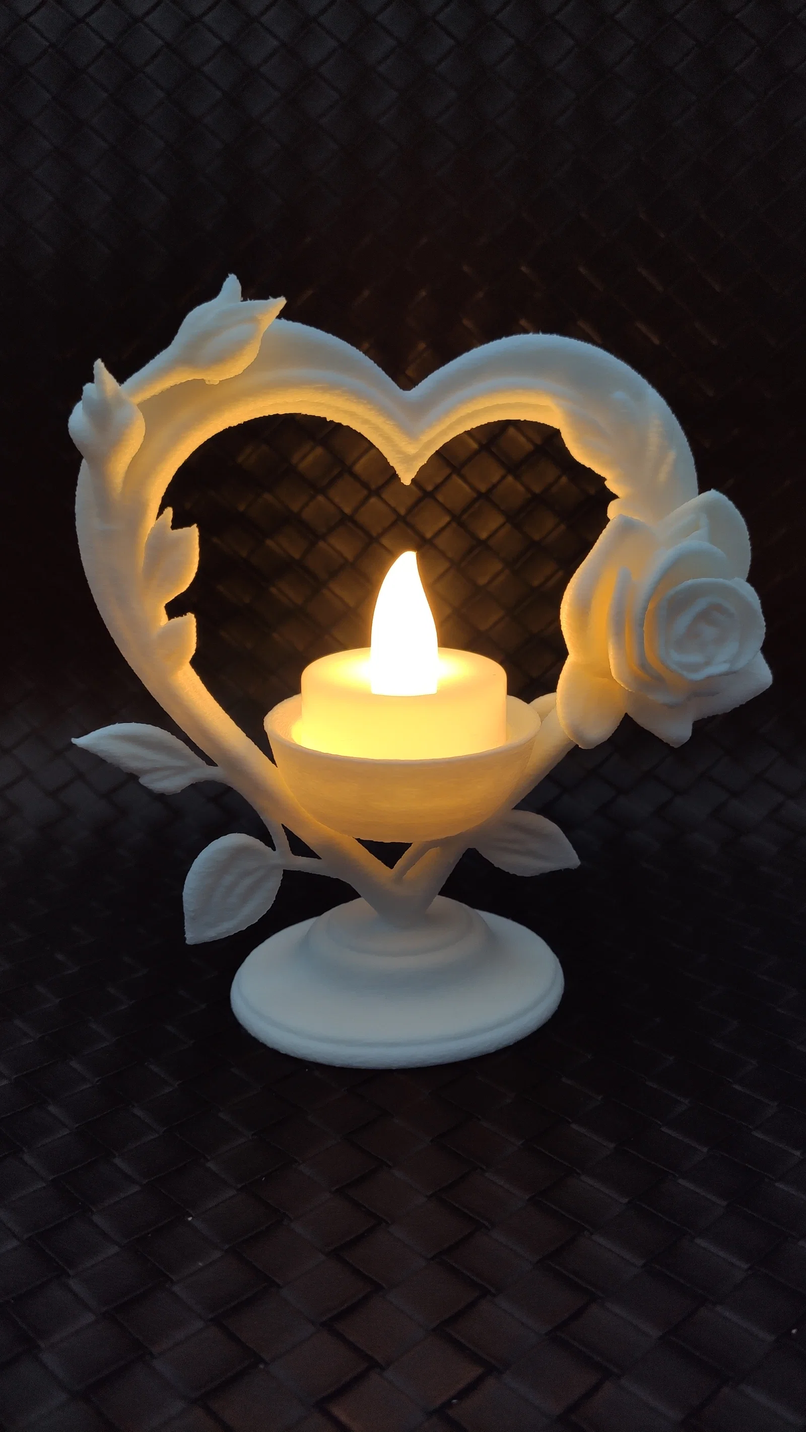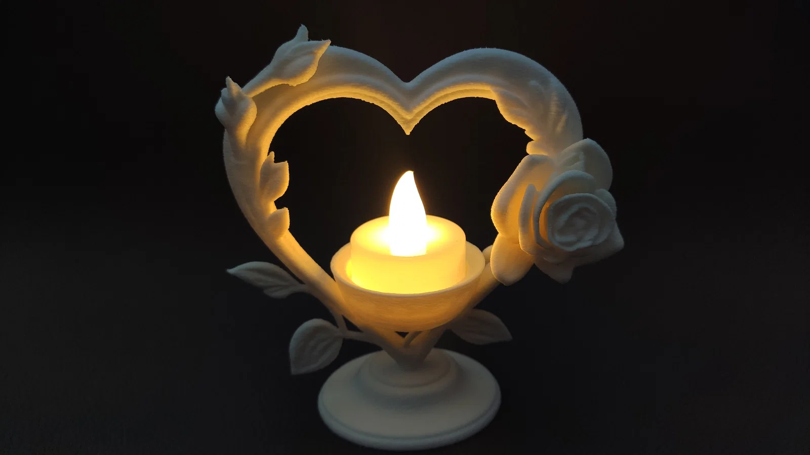 Đây là hai đế nến LED được thiết kế theo hình bông hoa hồng nằm trong trái tim. Phù hợp với loại nến tealight kích thước tiêu chuẩn (đường kính 37 mm), tuy nhiên bạn vẫn có thể tùy chỉnh kích thước theo ý muốn. Cấu hình in gợi ý của tôi (sử dụng nhựa PLA): lớp in 0,16mm / 2 thành tường / 10% gyroid / Tree supports. Hãy cẩn thận khi tháo phần support nhé, vì chúng hơi khó gỡ một chút. #### Rose Flower in a Heart - Frame