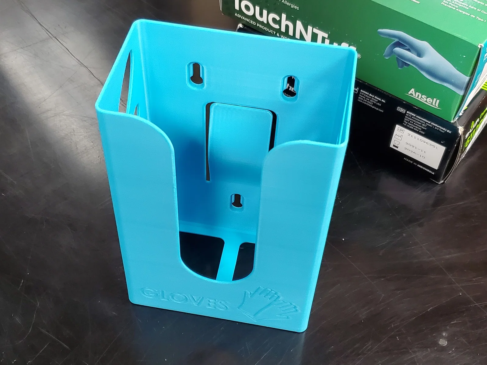 Đây là mẫu hộp đựng găng tay dùng một lần gắn tường cơ bản. Sản phẩm được thiết kế để vừa hầu hết các loại hộp găng tay loại 100 hoặc 150 chiếc. Bạn có thể gắn lên tường bằng ba con ốc vít; tui có đính kèm file PDF mẫu để khoan lỗ chính xác. Nhớ in mẫu ở tỉ lệ 100% và kiểm tra kích thước trước khi khoan nhé, vì không phải máy in nào cũng in chuẩn xác, bạn có thể cần điều chỉnh tỉ lệ một chút.