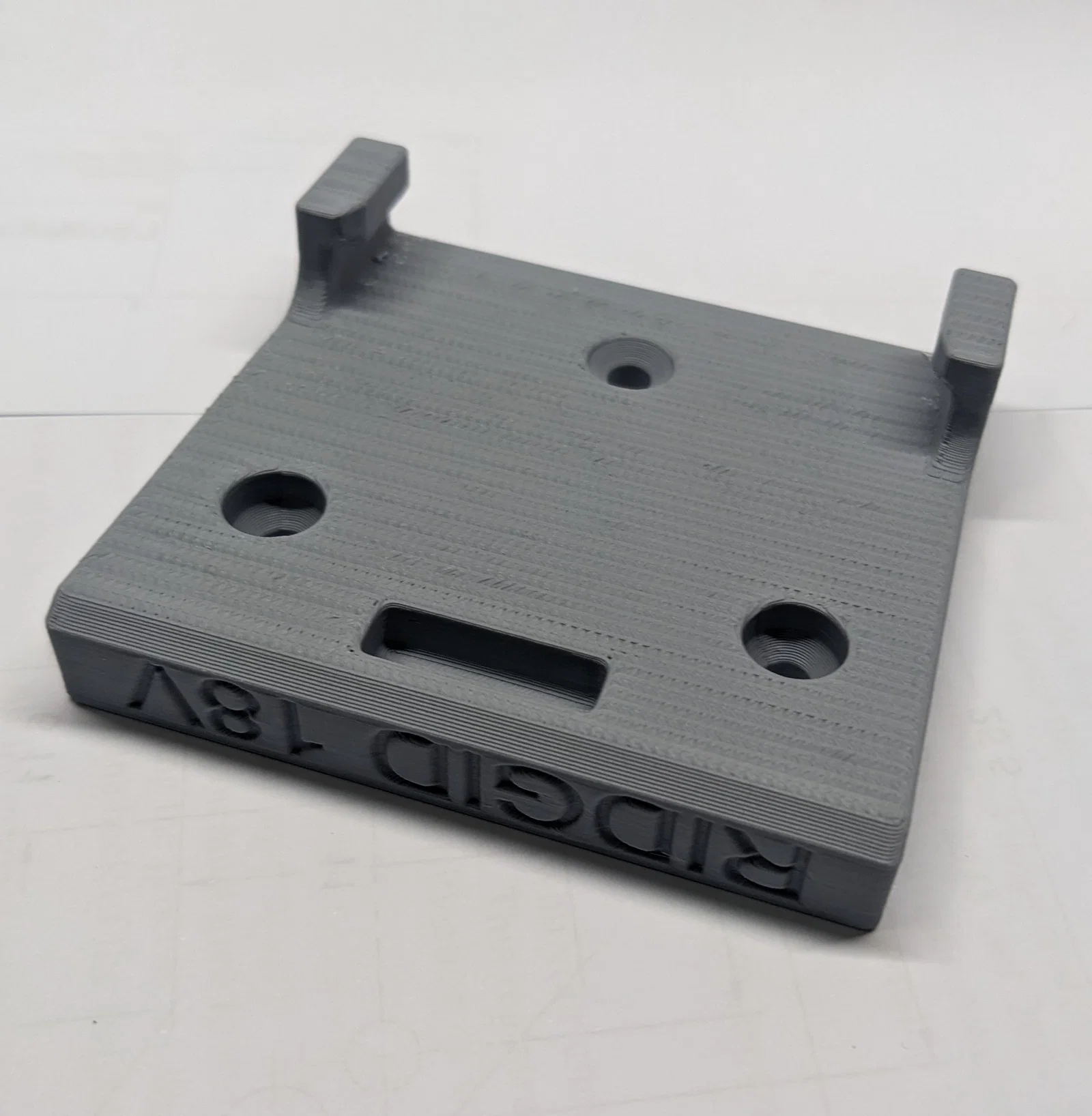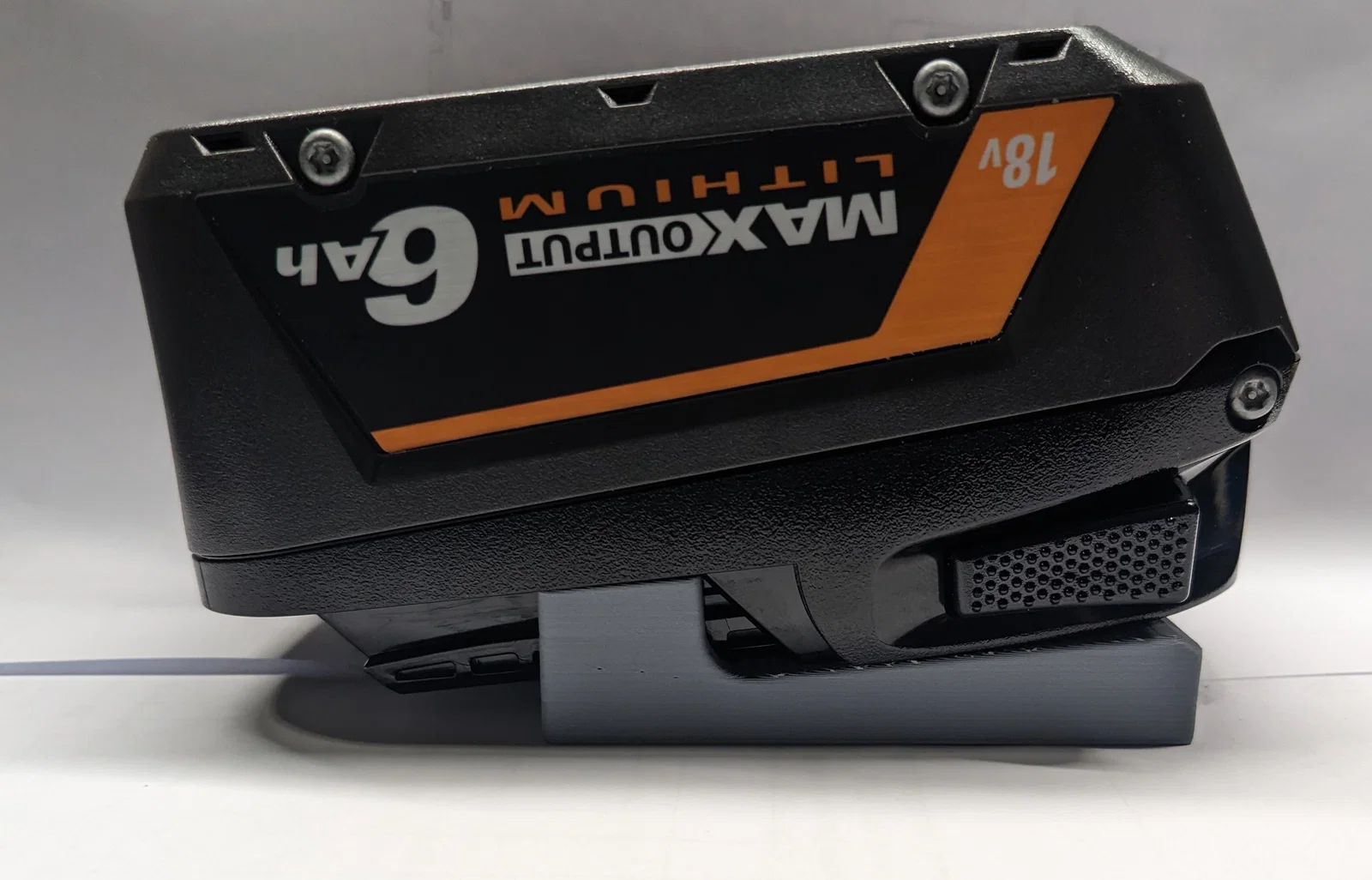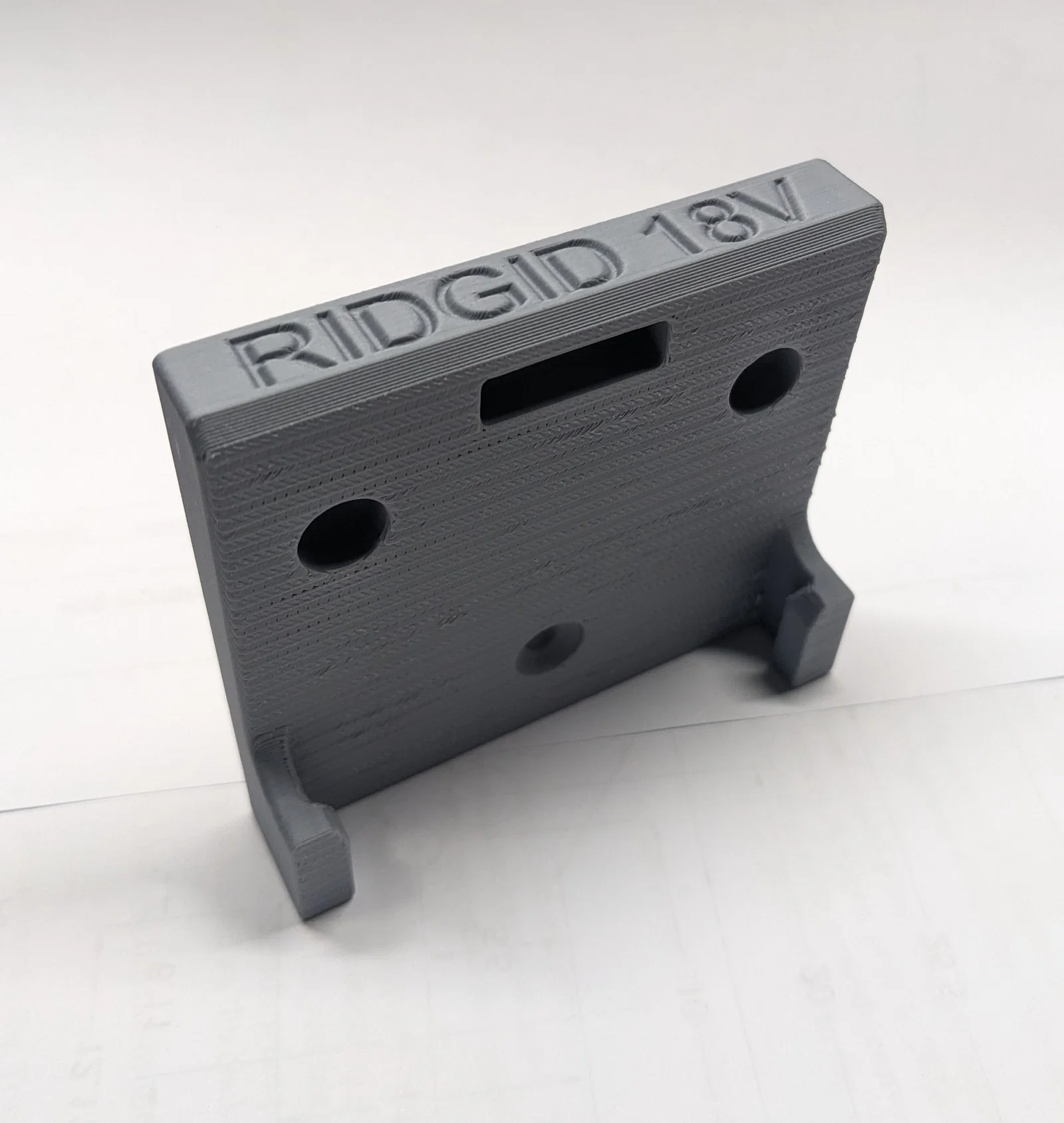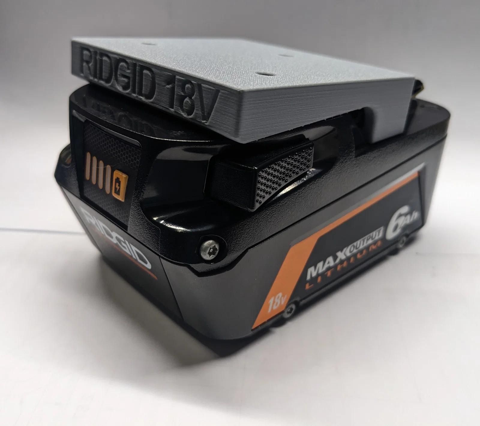 Đế giữ pin cho dòng máy Ridgid 18V, thiết kế đặc biệt có chốt khóa giúp giữ pin chắc chắn kể cả khi di chuyển. Mẫu in đi kèm 2 tùy chọn có hoặc không có lỗ bắt vít, rất phù hợp để gắn lên thùng đựng đồ hoặc tường.