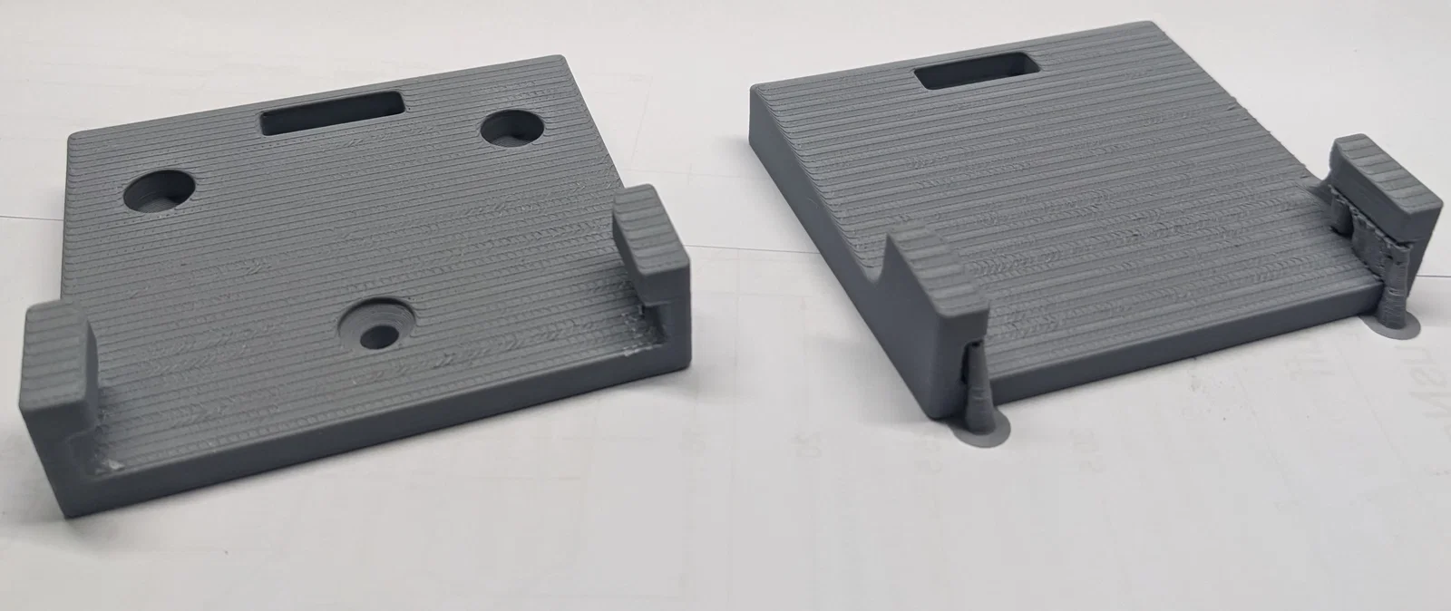 Các sản phẩm trong hình được tôi in với chiều cao lớp 0.16mm, nhưng thực tế bạn không cần cầu kỳ như vậy, in ở 0.20mm là ổn rồi. Tôi đã dùng 3 lớp tường (walls) và độ phủ 25% (infill). Bạn sẽ cần hỗ trợ (support) cho các ngàm bên dưới nơi giữ thanh trượt của pin. Tôi đã dùng tính năng vẽ support (support painting) vì tính năng tự động thường tạo support cả vào phần chữ, vốn không cần thiết. Bạn có thể thấy các đường tree supports trong ảnh chụp của tôi.
