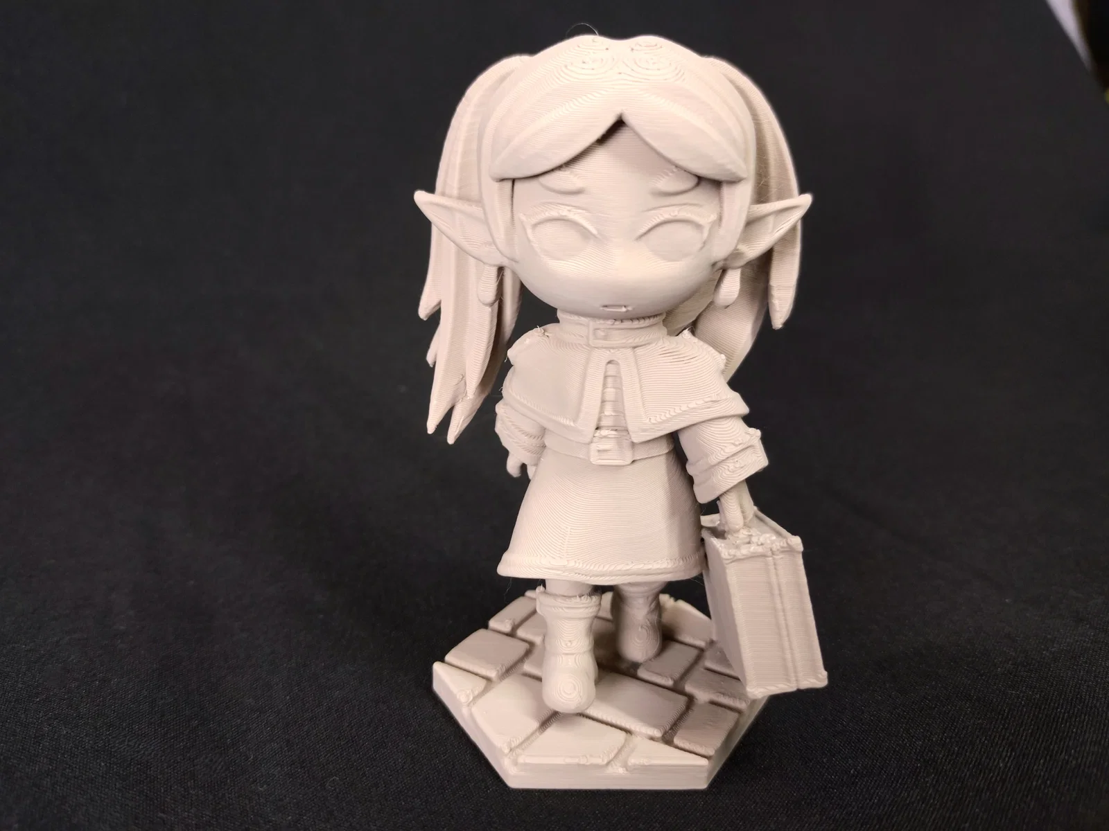 Mô hình Frieren phong cách chibi siêu đáng yêu đang dắt theo chiếc vali của mình. File bao gồm hai phiên bản mắt để bạn lựa chọn, kèm theo hướng dẫn xoay góc 30 độ và cách tùy chỉnh support trong PrusaSlicer để in hiệu quả nhất.