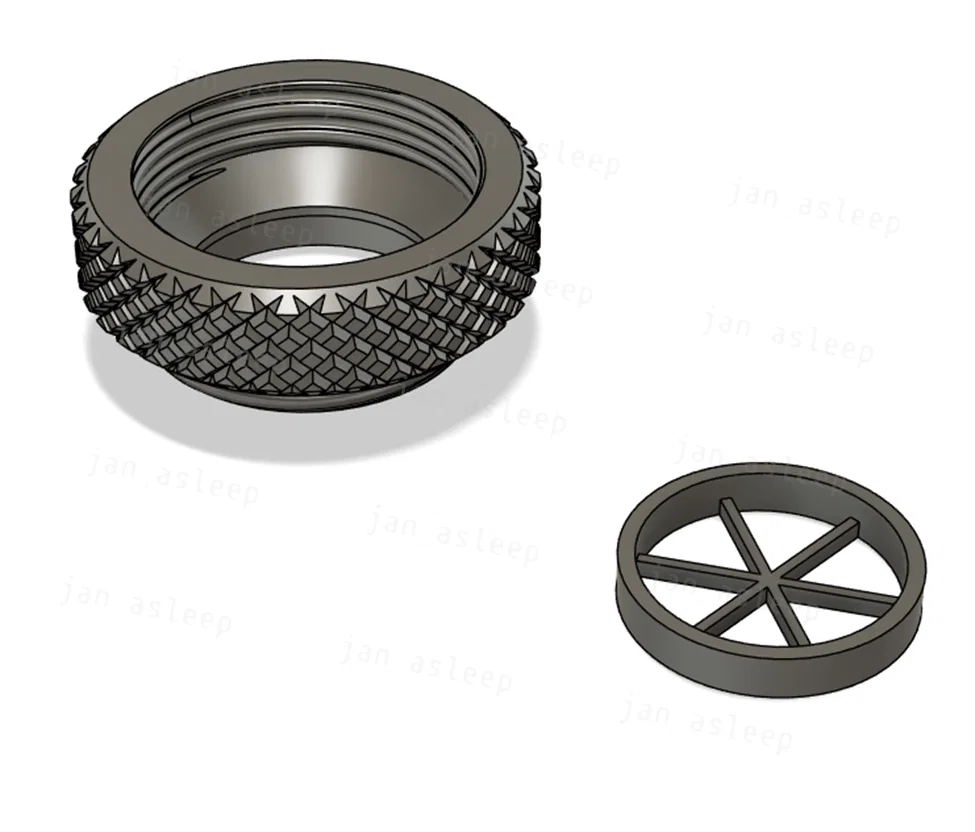Thiết kế này in không cần support. Phần thân chính đặt mặt lớn xuống bàn in, còn miếng chèn nhỏ thì đặt phần nan hoa xuống bàn. Tối ưu cho nozzle 0.6mm và layer height 0.2mm, nhưng dùng nozzle 0.4mm in vẫn rất ổn.