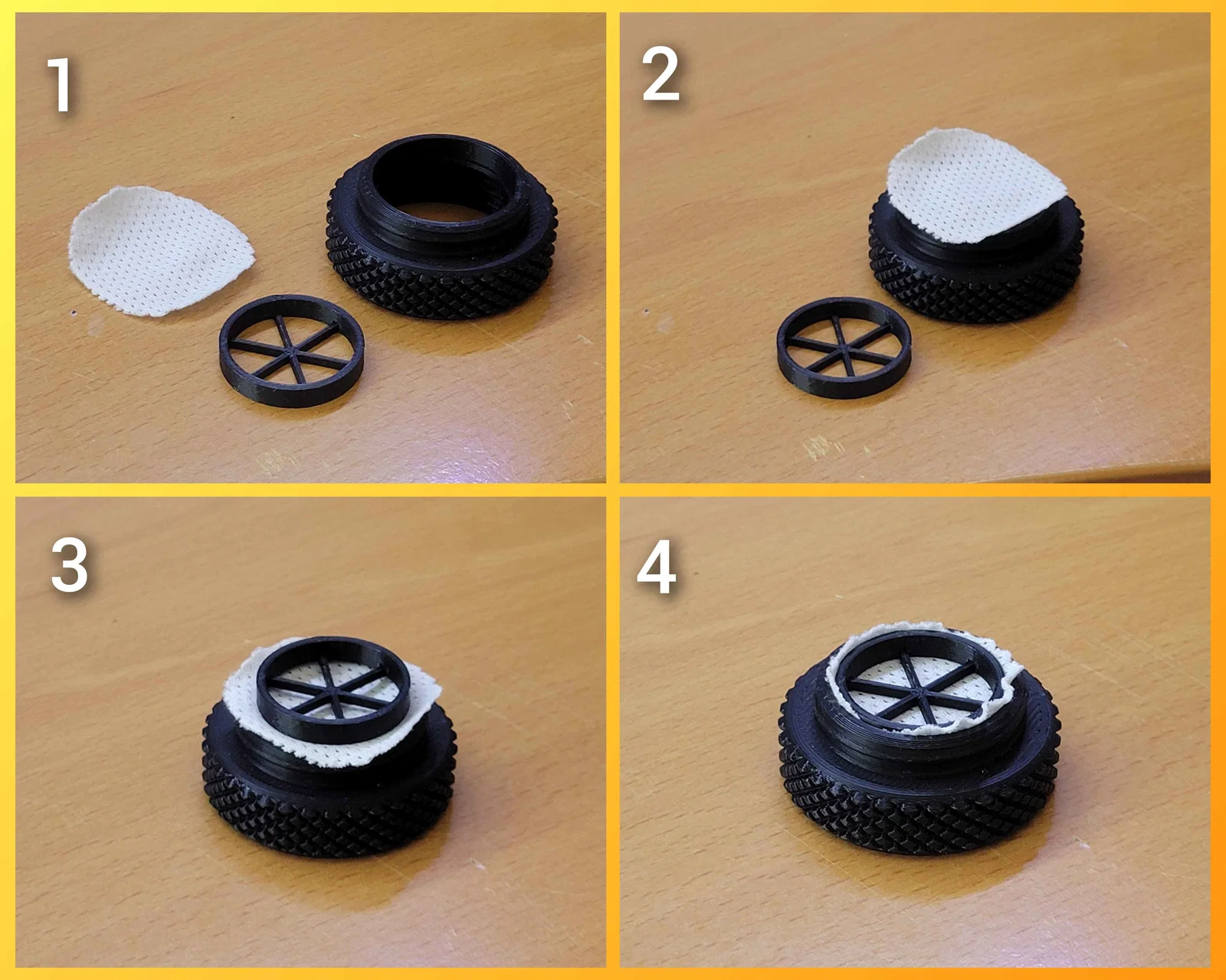 Mình muốn đeo mặt nạ MSA Millennium ra ngoài trời nhưng lại sợ côn trùng chui vào trong, nên mình đã thiết kế phụ kiện này để gắn thêm lưới lọc. Mình tận dụng một mảnh áo cũ có chất liệu lưới. Ngoài ra, bạn cũng có thể dùng lưới cửa sổ, vải lọc hoặc các chất liệu thoáng khí tương tự. Vòng chính cũng dùng để trang trí rất đẹp.