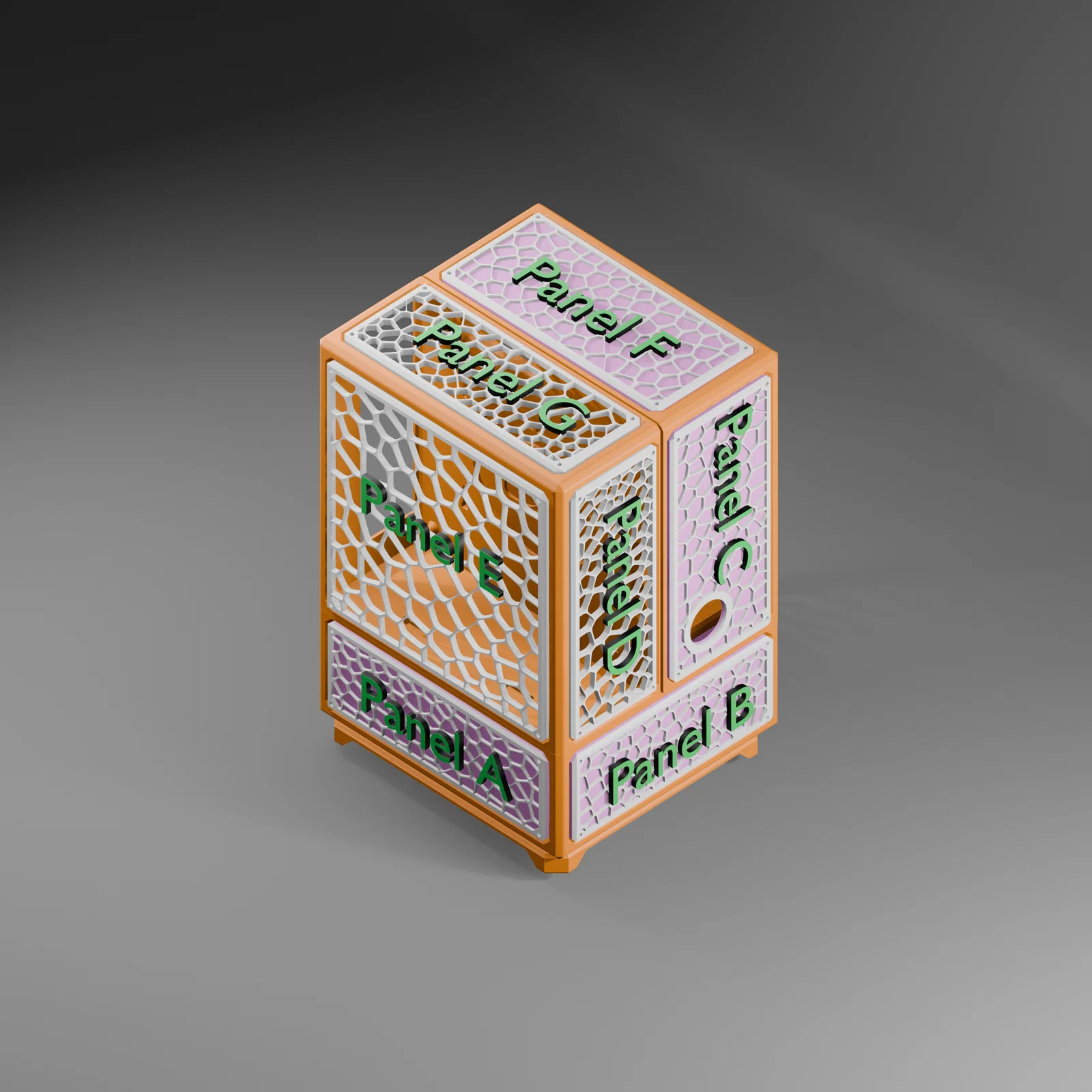 Nên in bộ khung chính bằng vật liệu bền như PETG hoặc ABS. Với các tấm panel bên hông thì dùng PLA là hoàn toàn ổn.