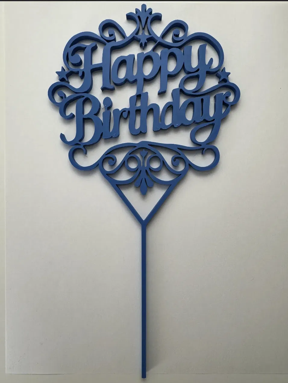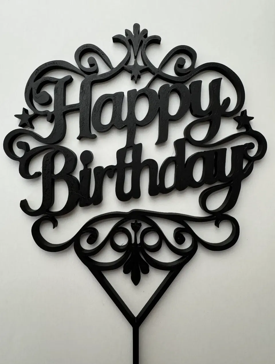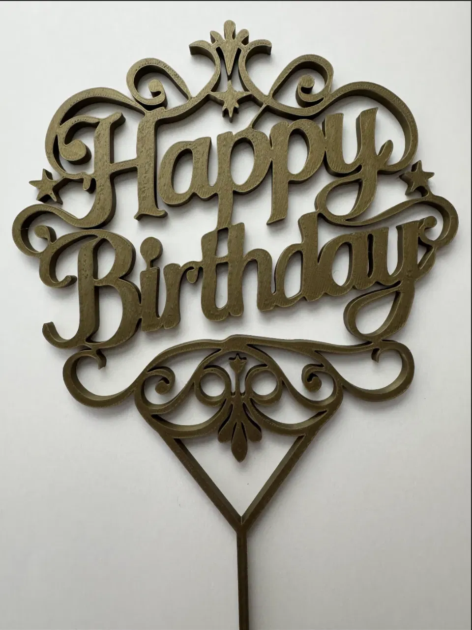 Bạn đang tìm kiếm một điểm nhấn đặc biệt để chiếc bánh kem sinh nhật trở nên lung linh và ấn tượng hơn? Mẫu cắm trang trí bánh kem (cake topper) với dòng chữ "Happy Birthday" được thiết kế cực kỳ tỉ mỉ này chính là giải pháp hoàn hảo cho bạn. Với các đường nét hoa văn uốn lượn đầy sang trọng kết hợp cùng dòng chữ được cách điệu mềm mại, sản phẩm này không chỉ là một phụ kiện trang trí đơn thuần mà còn là món quà nhỏ ý nghĩa giúp gửi gắm tình cảm đến người nhận trong ngày đặc biệt.