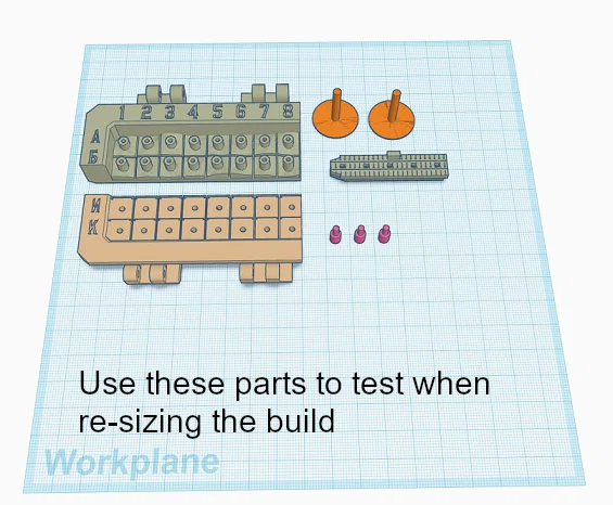Thêm hình ảnh minh họa cách cắt nhỏ linh kiện để thử nghiệm khi thay đổi kích thước game. Điều này giúp bạn chỉ cần in những phần cần thiết để test kích thước mong muốn, tiết kiệm rất nhiều thời gian và nhựa in. Ngoài ra, mình cũng đã thêm file STL chứa tất cả các linh kiện test trên một bàn in và một file zip các phần riêng lẻ.