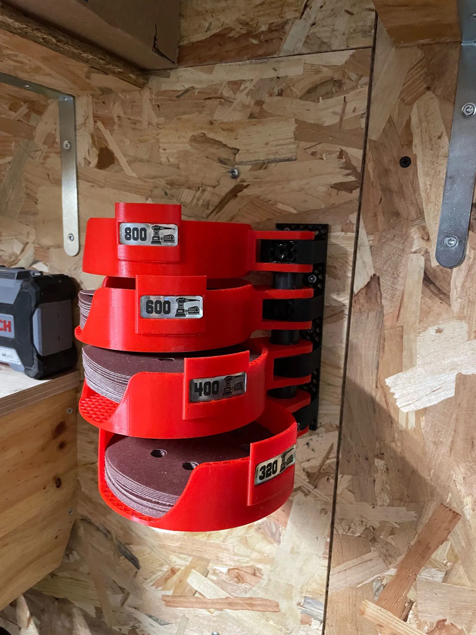 Giải pháp lưu trữ giấy nhám 125mm & 150mm tối giản, nhỏ gọn cho garage hoặc xe tải. Thiết kế dạng xếp chồng, dễ dàng in 3D với nhiều tùy chọn kích cỡ, giúp không gian làm việc của bạn gọn gàng và ngăn nắp hơn.
