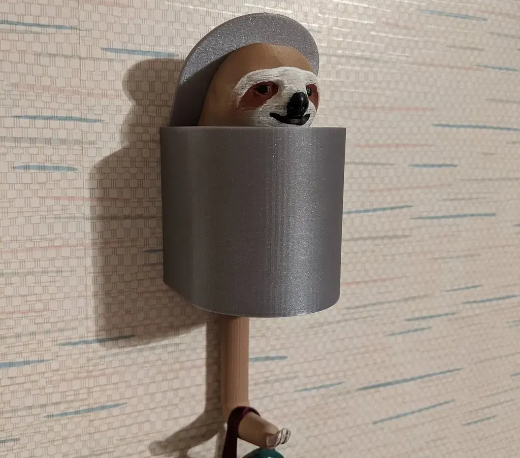 Đây là một bản remix của móc khỉ pop-up của tôi và bức tượng nhồi bông lười của AwesomeA. Tuy nhiên, vì lười không nổi tiếng với việc 'nhảy ra', tôi đã thêm một chút để cho lười có thể di chuyển lên và xuống. Tôi cũng đã thay đuôi bằng một chân vì đuôi ngắn của lười sẽ không tạo thành một cái móc tốt.