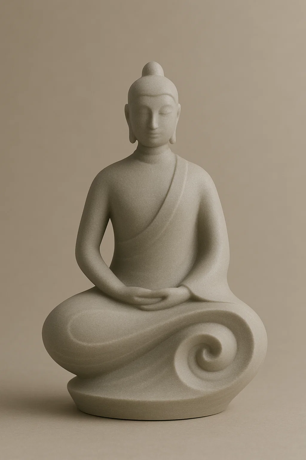 Nếu bạn đang tìm kiếm một món đồ trang trí mang lại sự bình yên và tinh tế cho không gian làm việc hoặc phòng khách, mẫu tượng Phật (Modern Buddha Sculpture) này là lựa chọn tuyệt vời. Với thiết kế cách điệu từ hình ảnh truyền thống kết hợp cùng những đường nét hiện đại, tối giản, tác phẩm này tạo nên một điểm nhấn nghệ thuật đầy cuốn hút. Sự kết hợp giữa tư thế thiền định và các đường xoắn ốc mềm mại ở chân đế mang lại cảm giác thư thái, rất thích hợp để đặt trên bàn làm việc hay các kệ tủ trang trí trong nhà.