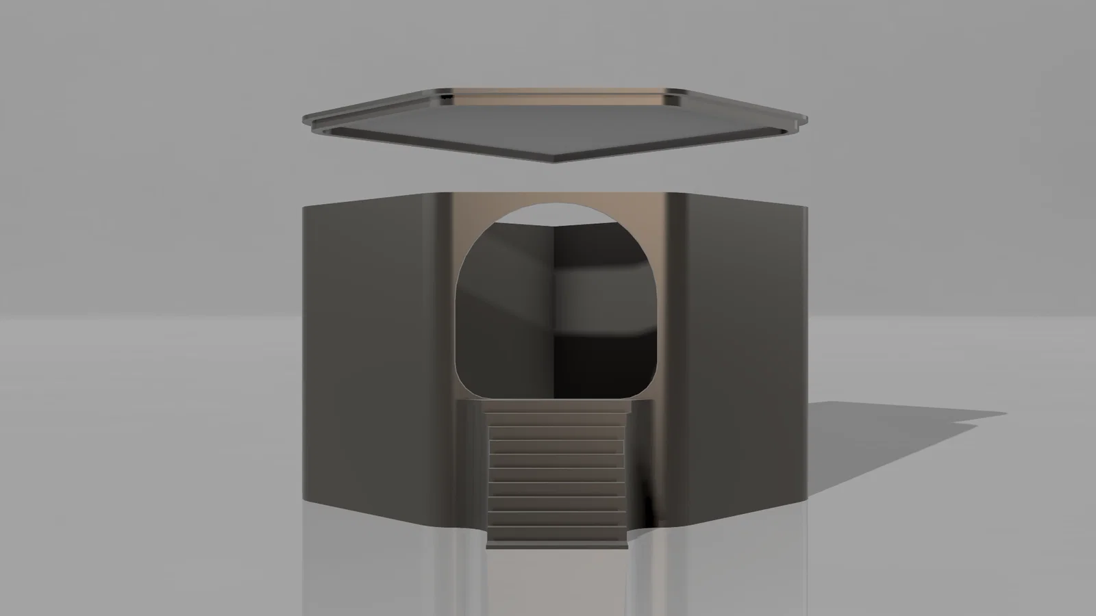 Mang đến cho bé hamster không gian tắm cát sạch sẽ, hiện đại với thiết kế lục giác có bậc thang và nắp rời tiện lợi. Sản phẩm dễ in, giúp hạn chế vương vãi cát và giữ vệ sinh cho chuồng nuôi hiệu quả.