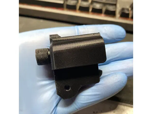 Một nòng Harlot với ren bên phải 1/2-28. Cũng có một tập tin cho một bộ bảo vệ ren ½-28. Nhà thiết kế ban đầu lo lắng về trọng lượng của một thiết bị nòng ở đầu nòng. Các bộ phận vừa vặn và một lò xo khóa nòng chất lượng sẽ giúp giải quyết vấn đề đó. Lấy các tập tin còn lại từ Harlot gốc và đọc hướng dẫn!