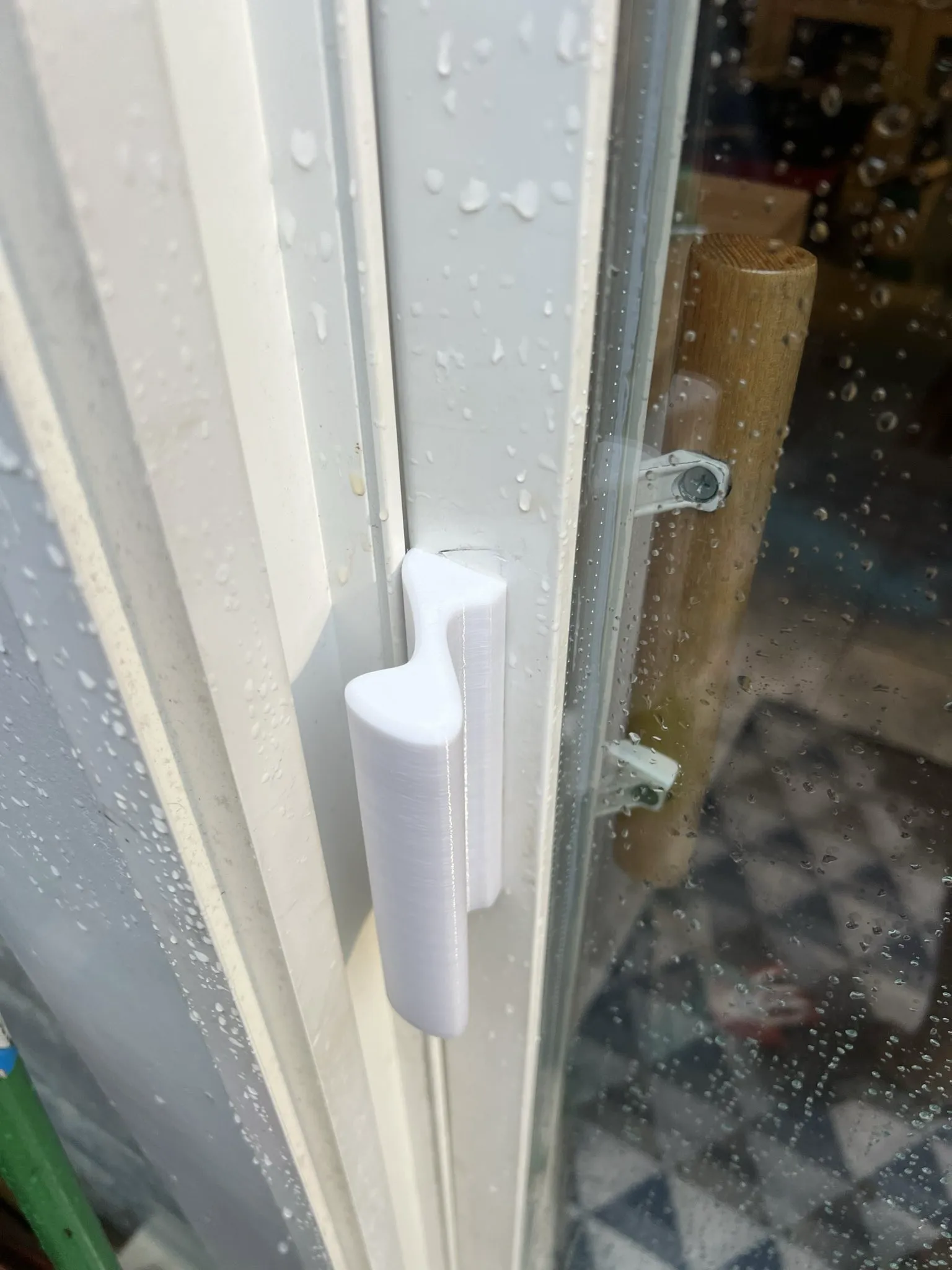 Tay nắm cửa patio bằng nhôm đúc bên ngoài của tôi đột nhiên hỏng và bị gãy. Tìm kiếm trên Amazon gợi ý tôi mua một bộ mới với giá 26 đô la. Tại sao phải chi tiền nếu bạn có một máy in 3D? 10 phút trong Fusion360 và 2h30m trên máy in và voilà. Và thiết kế mới thì ergonomics hơn nhiều. Lỗ vít được làm bằng ren mét 4mm.
