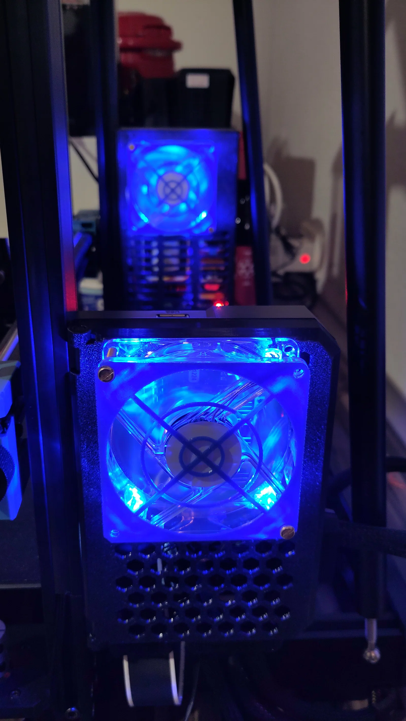 Sản phẩm này thay thế tấm chắn MCU gốc bằng một tấm mới cho phép bạn lắp quạt 80mm rời và (tùy chọn) mạch hạ áp 2596 để giảm tốc độ quạt. Mình khuyên bạn nên lắp quạt theo hướng hút khí từ trong vỏ hộp ra ngoài; cách này giúp lưu thông không khí nhanh hơn và tản nhiệt hiệu quả hơn. File mô hình in tốt ở chiều cao lớp 0.2mm với đầu phun tiêu chuẩn 0.4mm. Bạn sẽ cần thêm một ít support bên dưới các khe đi dây và đế gắn mạch hạ áp (khuyên dùng kiểu organic tree support). Nếu bạn định in trực tiếp trên máy SV06 ACE hoặc Plus ACE, hãy kiểm tra profile máy xem tính năng "external thick bridges" có đang bật không, nếu có thì hãy tắt nó đi. (Theo mình thì tính năng này làm phần overhang xấu hơn và không phù hợp khi kết hợp với các bề mặt support).