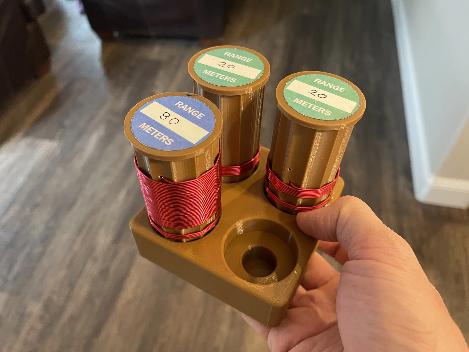Mình đã in mẫu này bằng nhựa PETG với độ infill 20%, nhưng bạn dùng loại nào cũng ổn cả. Lưu ý là tránh dùng nhựa màu đen vì có thể chứa thành phần carbon làm ảnh hưởng đến hệ số phẩm chất (Q) của cuộn cảm.
