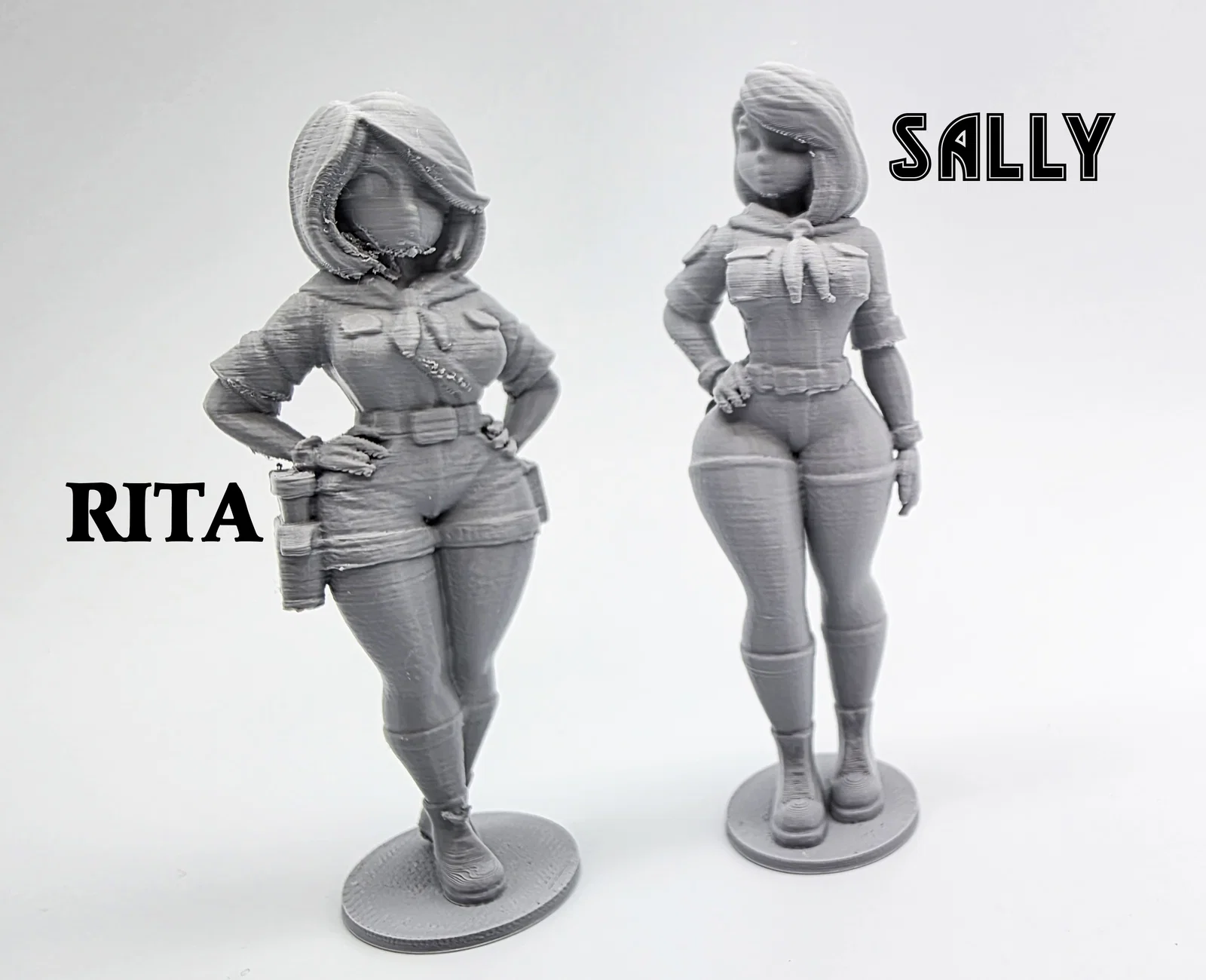 Trọn bộ 2 mô hình nhân vật Rita và Sally cực kỳ chi tiết dành cho những ai đam mê sưu tầm tượng. Lưu ý là mô hình có độ nét cao nên việc thu nhỏ kích thước có thể làm mất đi các chi tiết nhỏ. Sản phẩm rất thích hợp để trưng bày hoặc vẽ màu.