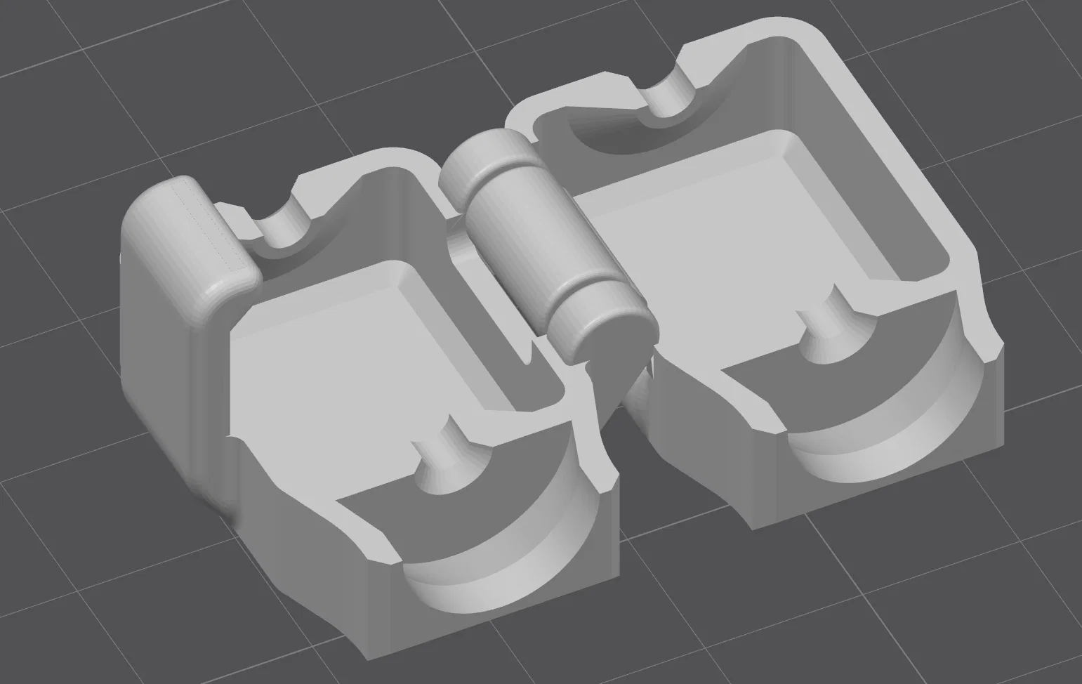 Thiết kế của bộ lọc gồm hai phần khớp nối với nhau bằng bản lề rất tiện lợi, cho phép anh em dễ dàng đóng mở để đặt miếng xốp lọc vào bên trong. Cấu tạo nhỏ gọn và thông minh giúp nó không chiếm nhiều không gian, dễ dàng lắp đặt ngay trên đường ống dẫn nhựa của Creality CFS. Đây là một phụ kiện in 3D "nhỏ nhưng có võ", giúp anh em bảo vệ đầu in và kéo dài tuổi thọ cho hệ thống CFS của mình một cách đơn giản nhất.