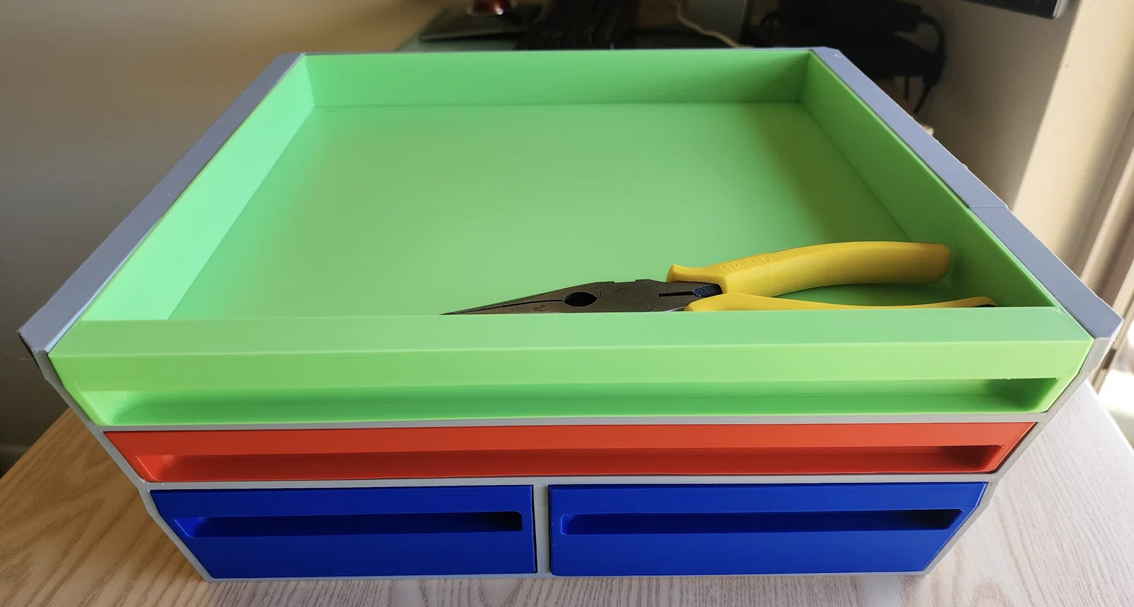 Mình đã in phần vỏ ngoài và thanh ray bằng nhựa PETG, còn các ngăn kéo thì in bằng PLA.