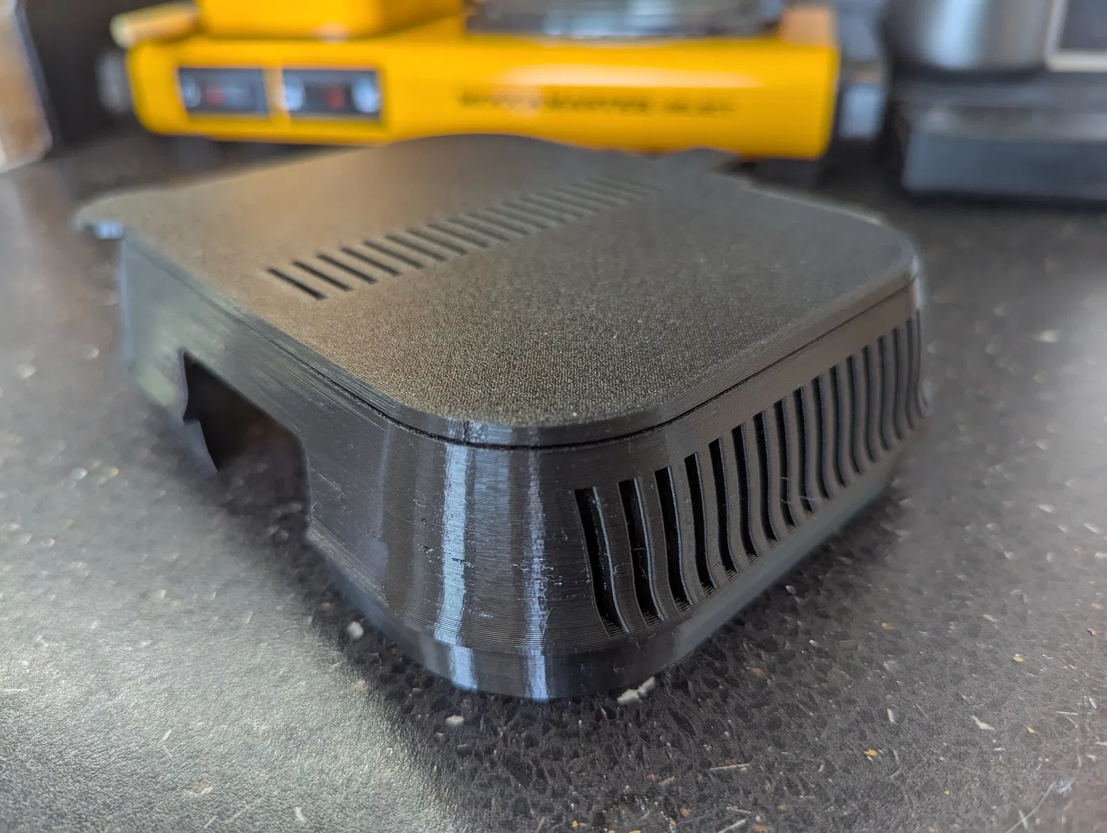 Tôi đã in mẫu này bằng nhựa PETG (nắp gốc là PET) và sử dụng được vài tuần rồi mà không thấy có dấu hiệu bị biến dạng. Tôi in với độ dày lớp 0.2mm, bạn nên lưu ý là in với lớp dày hơn có thể gây khó khăn cho phần bản lề của nắp.