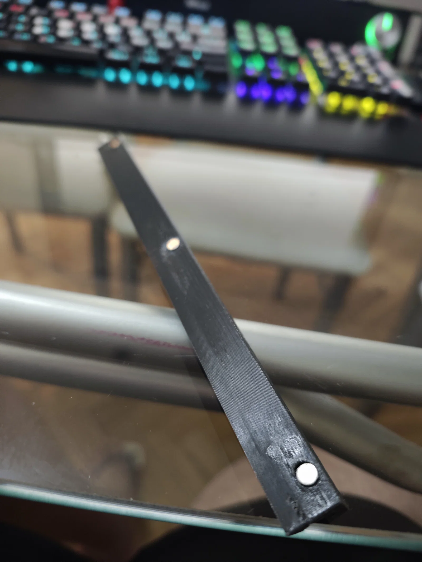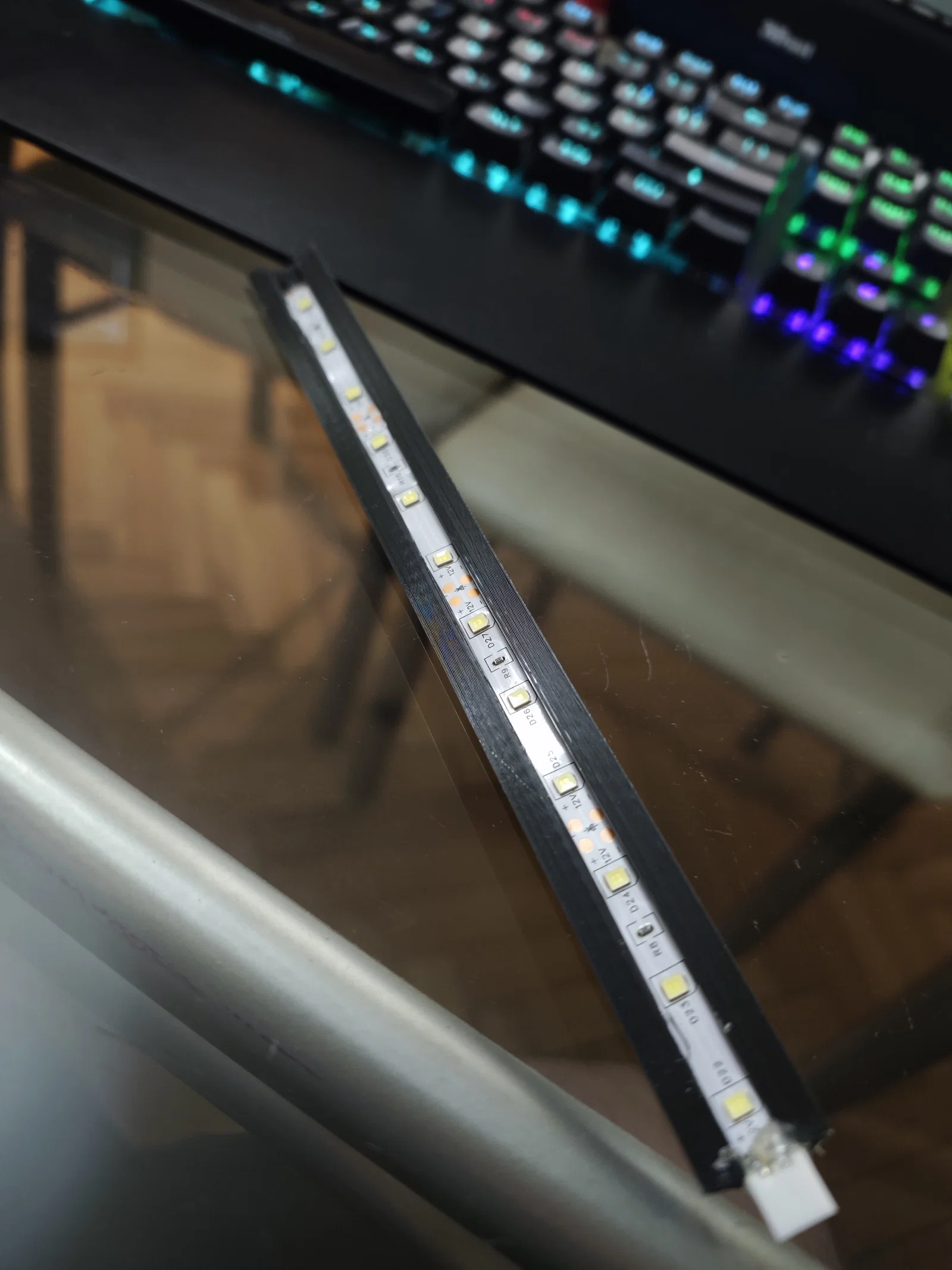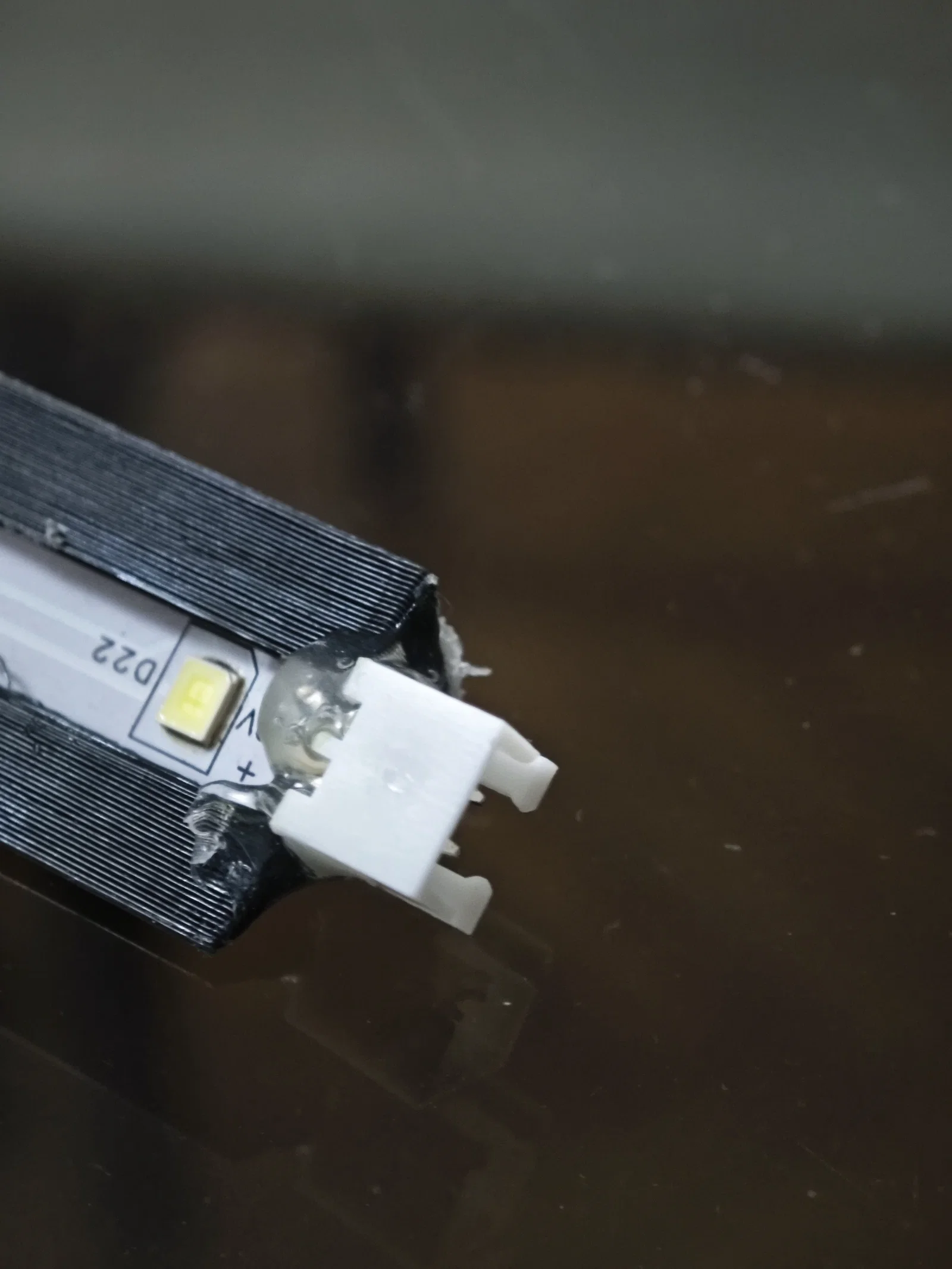 Tôi có dư vài linh kiện nhưng lại không có sẵn đèn LED 24V. Giá đỡ này được thiết kế để gắn vừa khít dải đèn LED 7mm mà không cần dùng đến keo dán. Ở mặt sau, tôi có thiết kế 3 khe để dán nam châm kích thước 5x2mm, độ hít đủ mạnh để giữ giá đỡ chắc chắn ngay cả khi máy chạy ở tốc độ cao.
