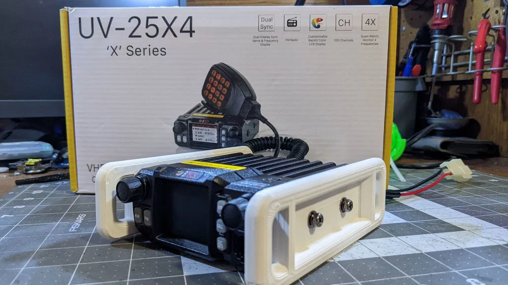 Đây là bộ khung và ray gắn được thiết kế cho dòng bộ đàm BTech UV-25x4 và các bản clone. Sản phẩm giúp cố định thiết bị chắc chắn, dễ dàng lắp đặt và có hỗ trợ file nguồn FreeCAD để bạn tùy chỉnh theo ý muốn.