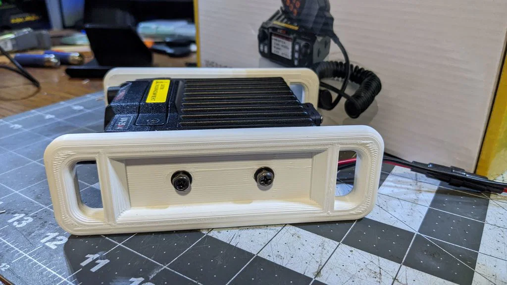 Mình đã thiết kế các lỗ dạng rãnh trượt (slotted), vì các gờ đúc và lỗ vít ở hai bên hông máy của mình không hoàn toàn đều nhau. Đây là điều dễ hiểu đối với các dòng máy bộ đàm giá rẻ.