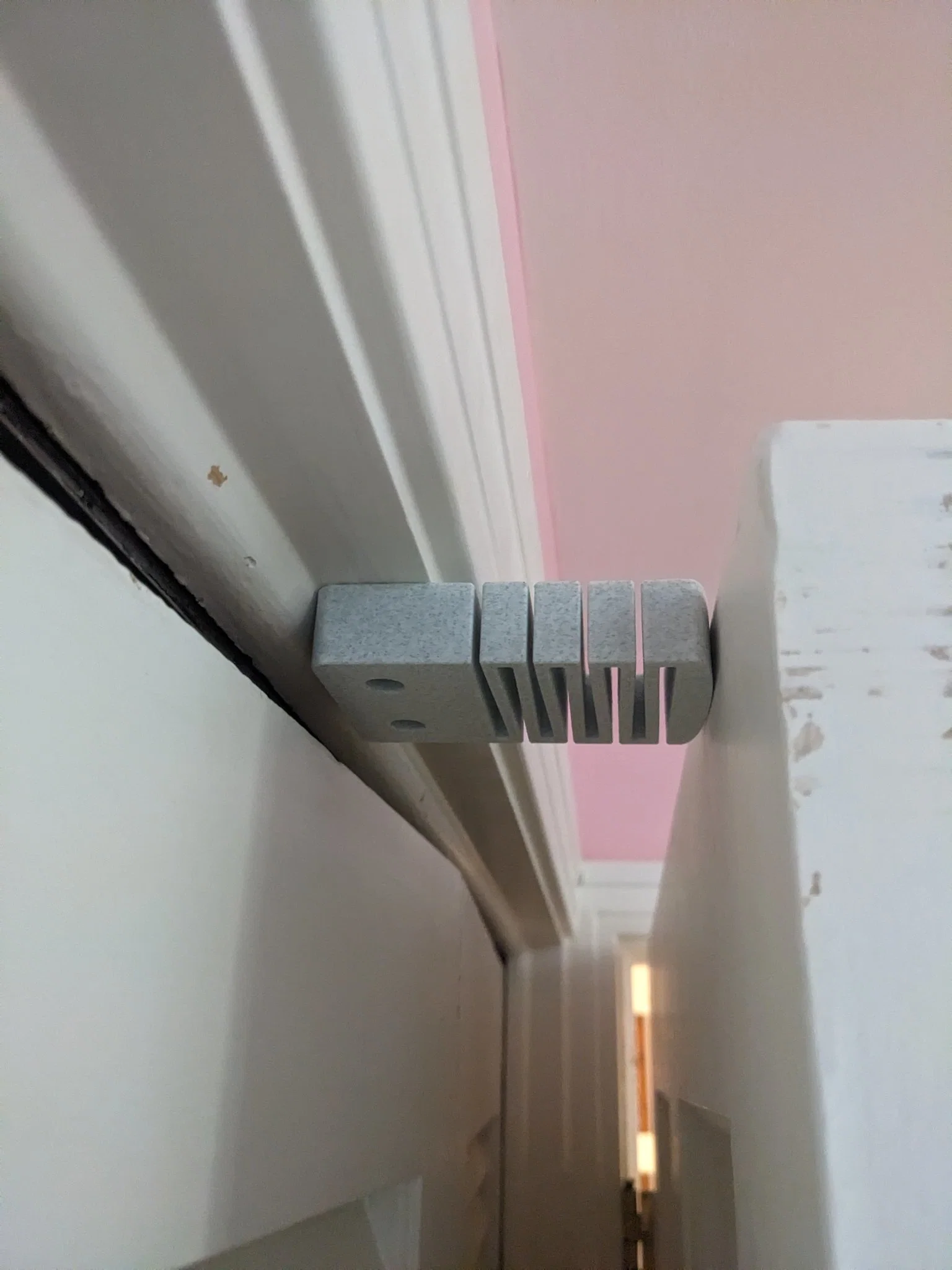 Tôi thực sự không thấy gì trên thị trường có thể hoạt động như một cái chặn cửa cho cửa phòng ngủ của con gái tôi mà mở vào một cánh cửa bản lề. Tôi đã thử các cái chặn hoạt động như một phần của bản lề, nhưng có quá nhiều lực xoắn và tôi đã phải thay thế các ốc vít trong bản lề vài lần rồi.