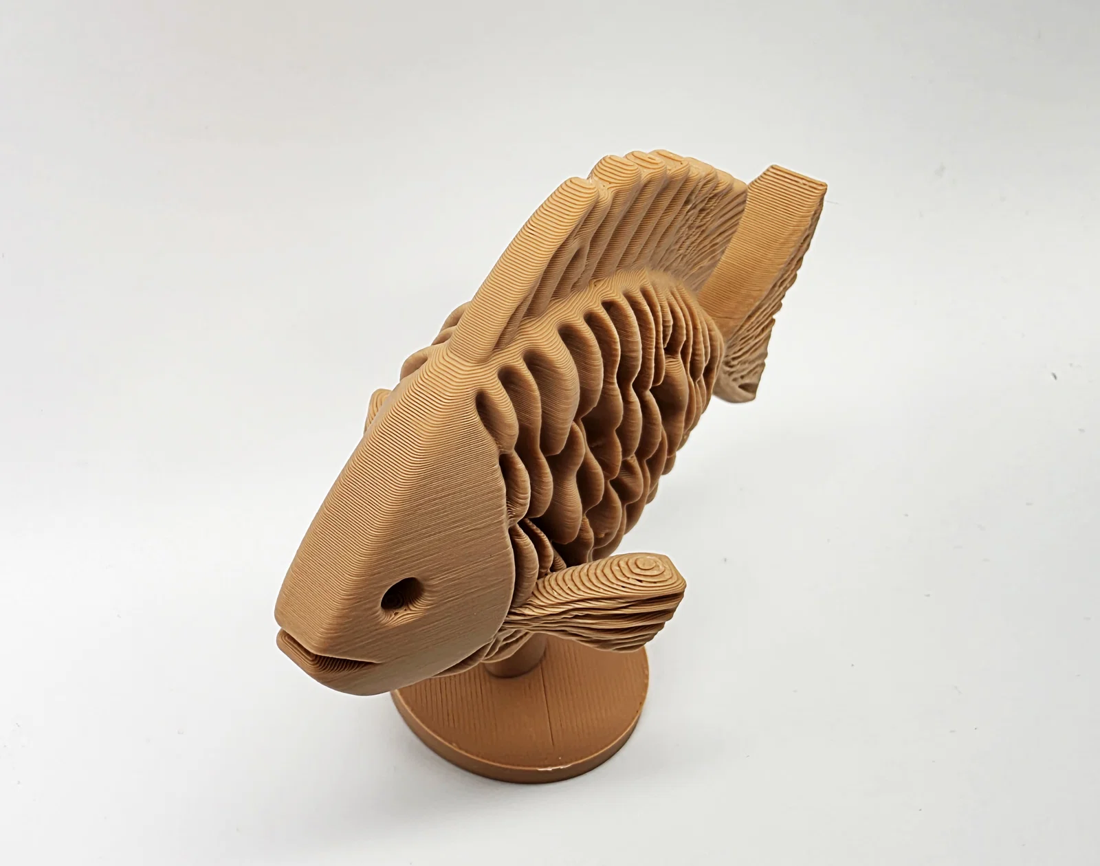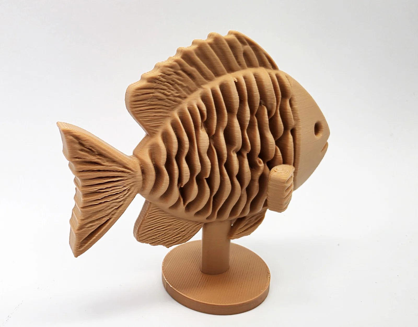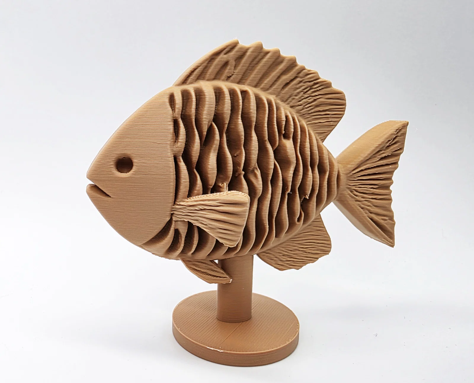 Một mẫu cá điêu khắc gỗ đơn giản đặt trên kệ, một món đồ trang trí vô cùng thú vị và bắt mắt cho không gian của bạn. Mẫu in này được tối ưu hóa để dễ dàng tháo gỡ hỗ trợ khi in.