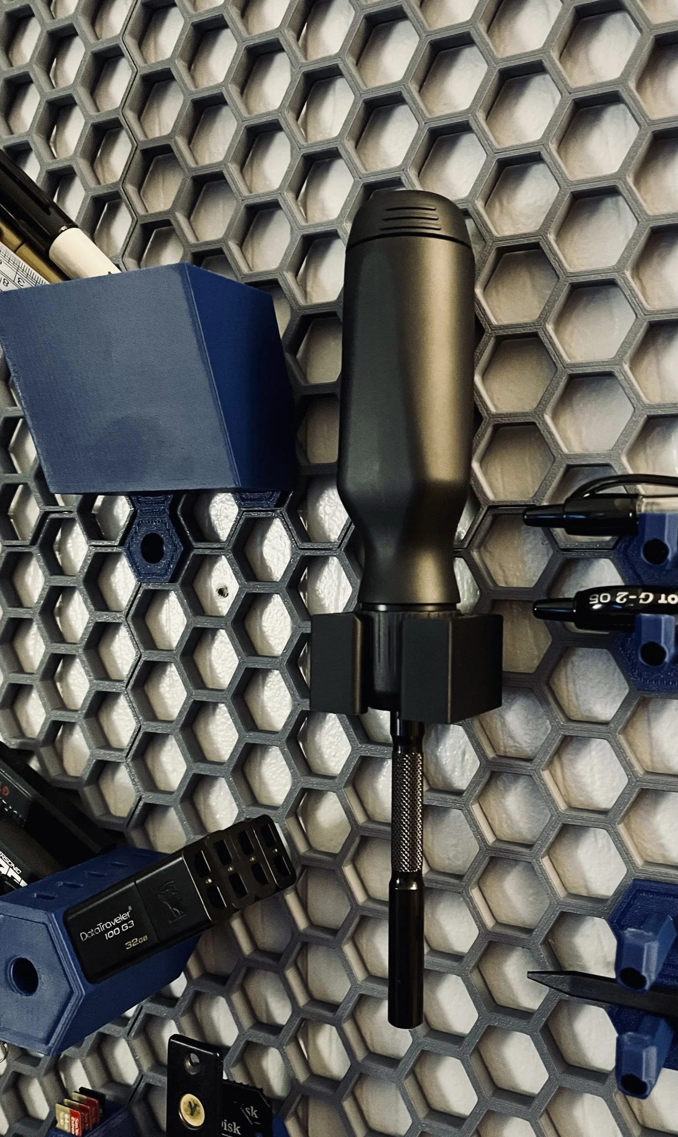 Mẫu ngàm gắn nhanh gọn và đơn giản giúp bạn cố định (và trưng bày) chiếc tua vít LTT của mình. Thiết kế này mang lại độ khít vừa phải để đảm bảo tua vít không bị rơi ra ngoài nhưng vẫn dễ dàng lấy ra để sử dụng ngay khi cần. Tệp STEP đã được đính kèm sẵn trong trường hợp bạn muốn tùy chỉnh thêm hoặc sử dụng với các loại bảng treo tường (wall organizer) khác.