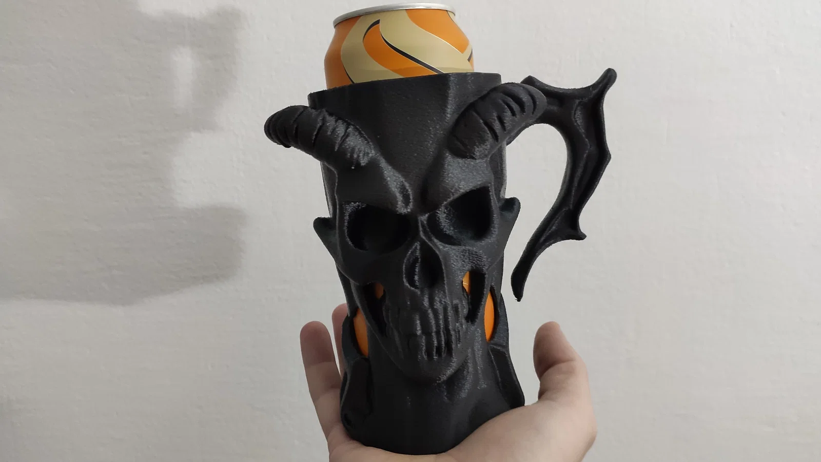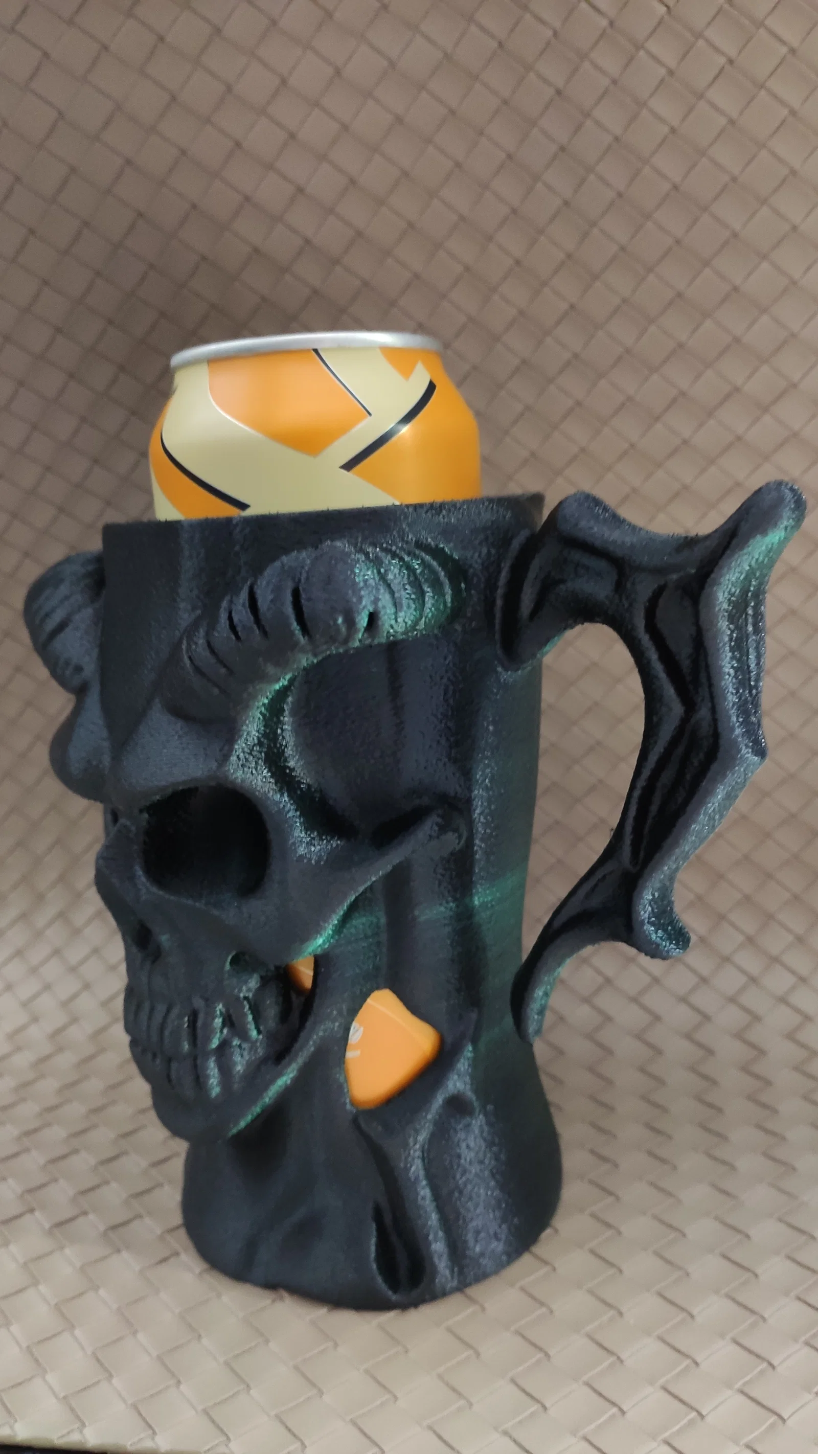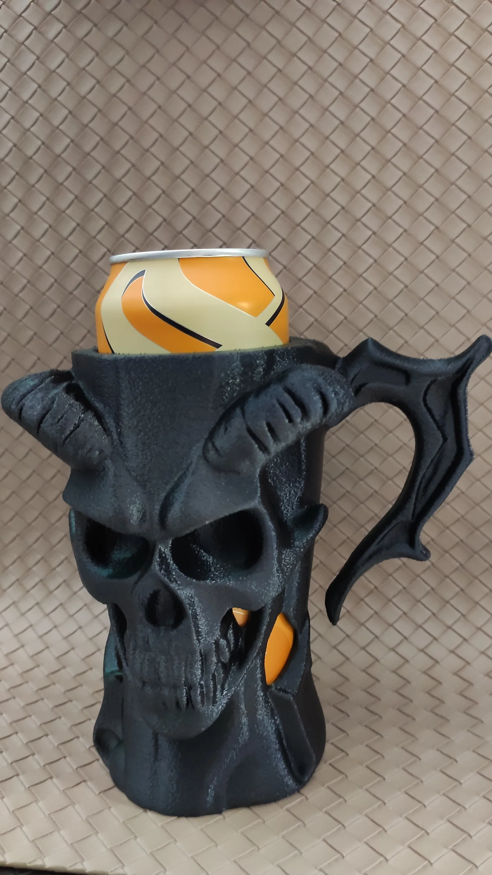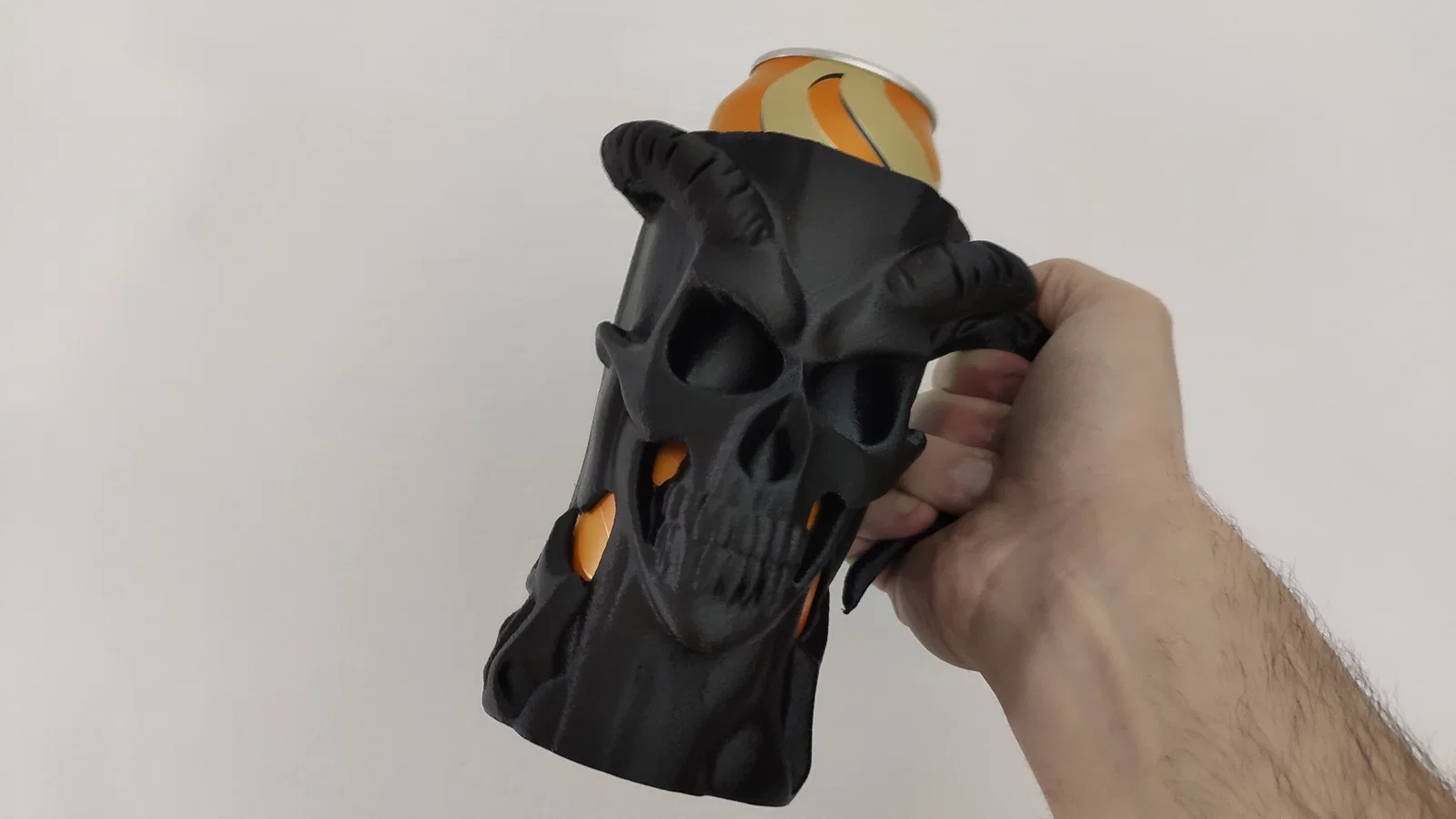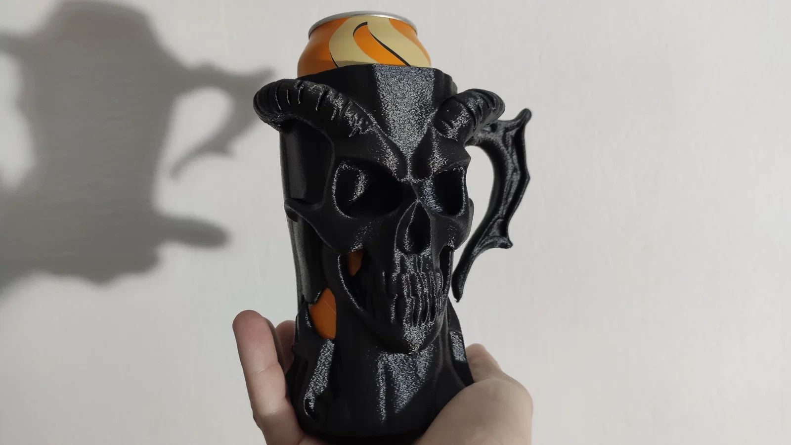 Mẫu giá đỡ lon bia độc đáo mang phong cách kinh dị với hình đầu lâu quỷ sừng dài. Sản phẩm được thiết kế tối ưu để chứa vừa vặn các loại lon 0.5L tiêu chuẩn châu Âu, hoàn hảo để làm vật trang trí hoặc sử dụng trực tiếp như một chiếc cốc lạ mắt.