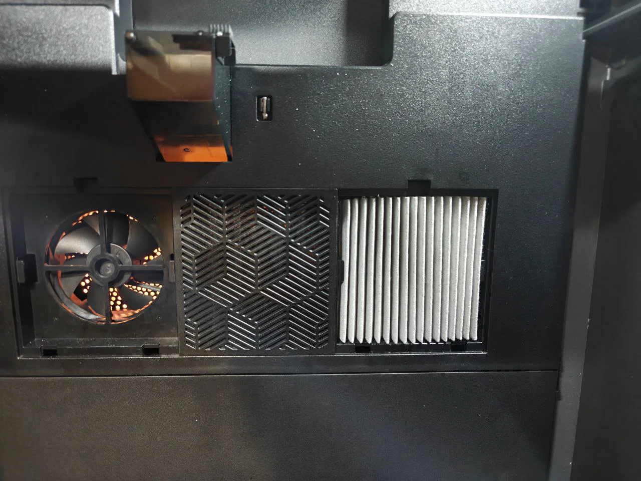 Khi thông gió, khí nóng sẽ được hút từ phần trên của buồng in, giúp làm mát khoang in hiệu quả hơn.