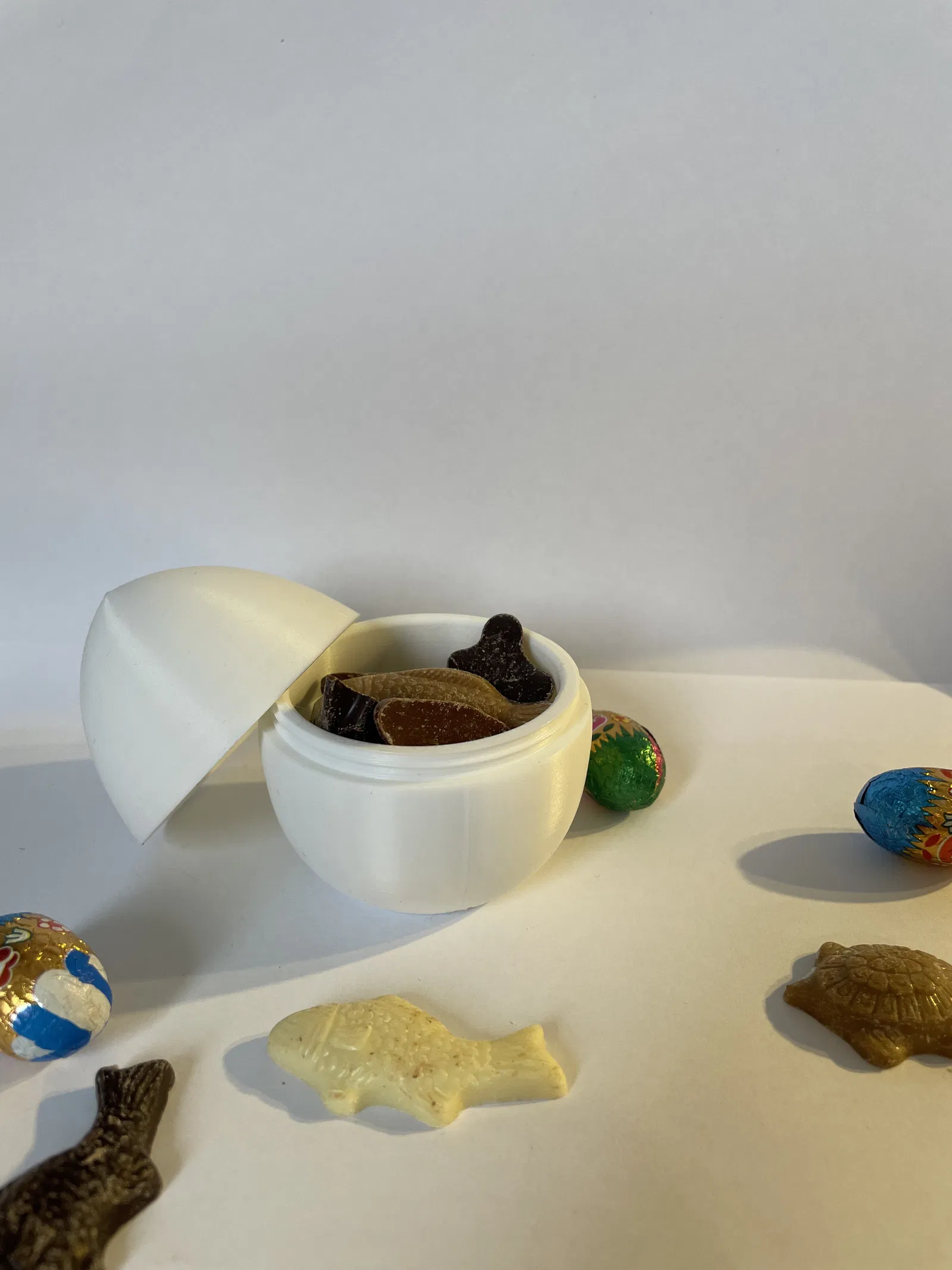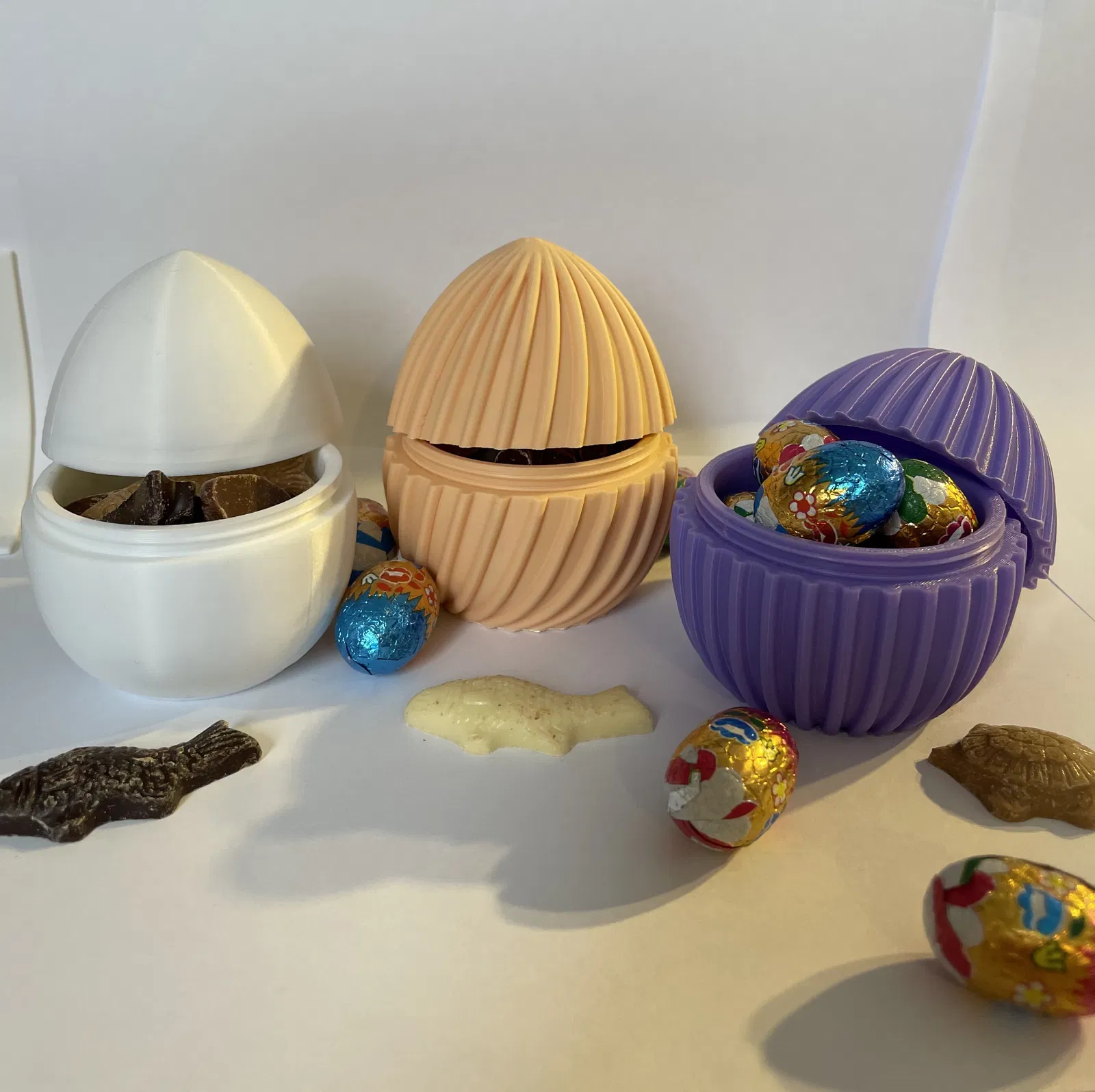 Những quả trứng in 3D độc đáo này được thiết kế gồm hai phần vặn vào nhau, tạo thành một chiếc hộp đựng kẹo, sô-cô-la hoặc những món quà nhỏ đầy thú vị và có thể tái sử dụng.