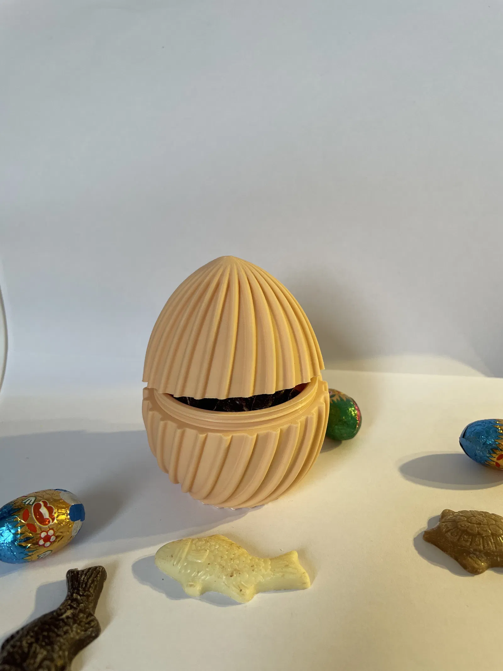 Trứng bất ngờ in 3D với thiết kế ren vặn độc đáo, giúp bạn đựng kẹo, sô-cô-la hoặc những món quà nhỏ xinh xắn. Sản phẩm có kích thước 78mm, ren mịn đảm bảo khớp nối chắc chắn, là món quà hoàn hảo cho dịp Lễ Phục sinh hay các dịp đặc biệt.