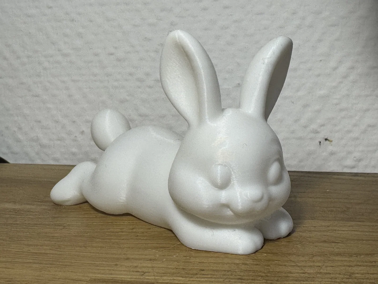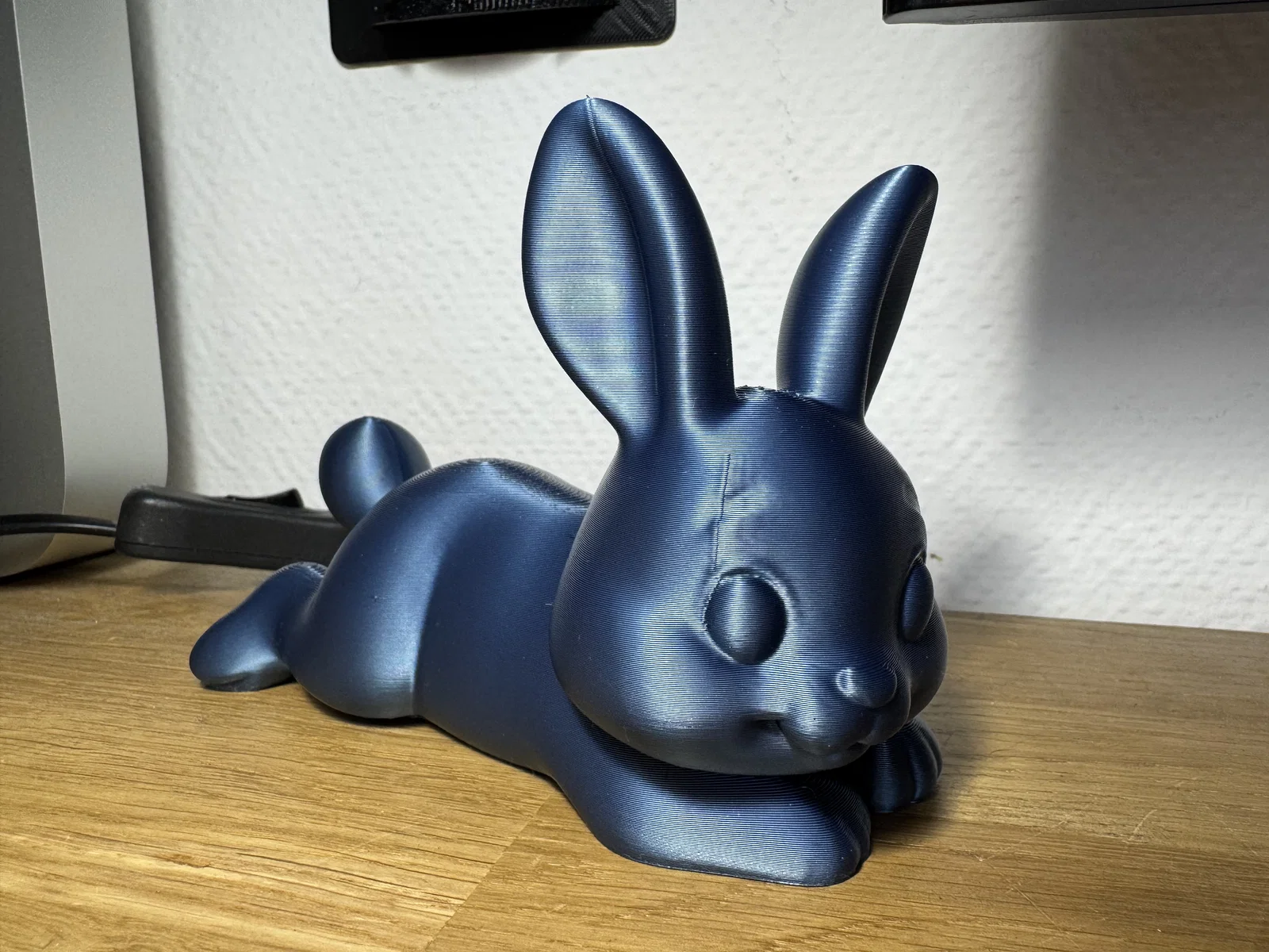 - Chất liệu đề xuất: PLA là lựa chọn tốt nhất nhờ khả năng in dễ dàng, độ chi tiết cao và bề mặt hoàn thiện mịn màng. Bạn cũng có thể dùng PLA Silk để tạo hiệu ứng bóng bẩy, sang trọng như chú thỏ màu xanh trong hình ảnh minh họa.