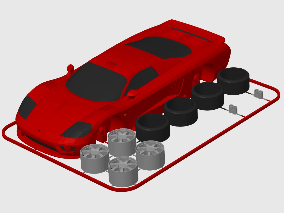 Các phiên bản Bộ đầy đủ có sẵn dưới dạng file STL để in một màu. Có một file 3MF với màu sắc được thiết lập sẵn dành cho các bạn dùng AMS hoặc MMU. Nếu không dùng đa màu, bạn cần in riêng phần khung gầm (chassis), lốp và bộ mâm & ống xả.