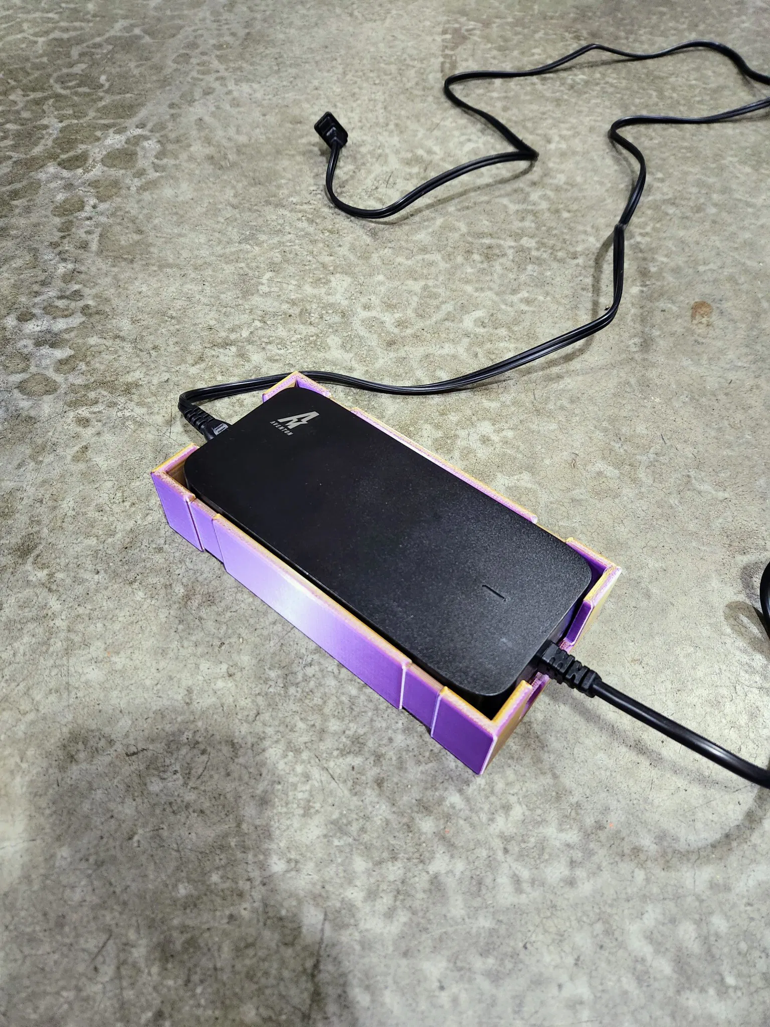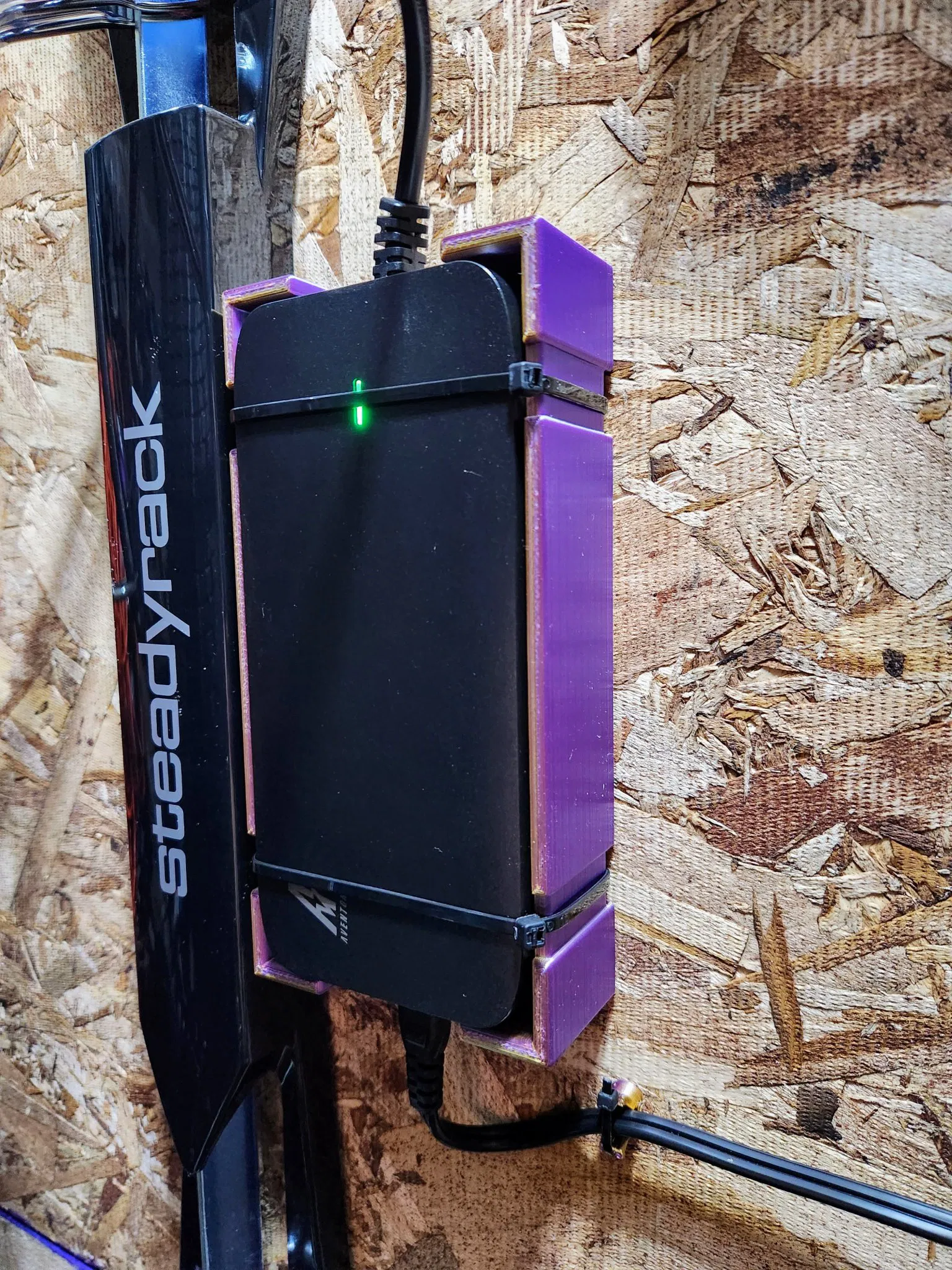 Giá treo tường cho bộ nguồn của Aventon Pace 500.2 (mặc dù có thể tương thích với nhiều bộ nguồn khác nếu bạn kiểm tra kích thước của mình), với các kênh để sử dụng dây zip để lắp đặt. Các lỗ được kích thước cho vít #10. Giá này cũng nên hoạt động cho các bộ nguồn khác có kích thước tương tự với các đầu nối IEC và cáp đầu ra được căn giữa ở mỗi đầu của bộ nguồn. Để tham khảo, kích thước bên trong là 176.75mm dài x 82.8mm rộng x 35mm sâu.