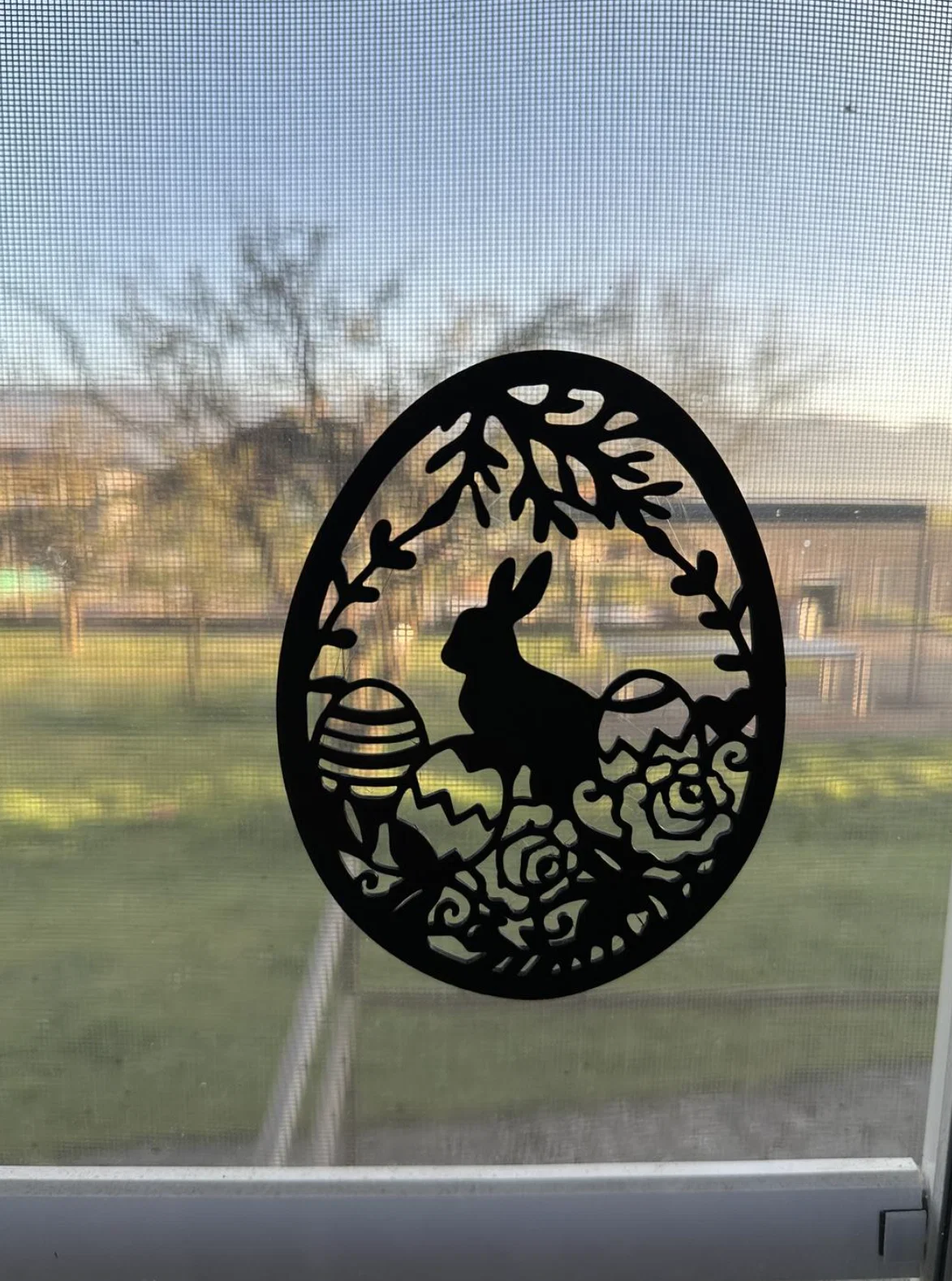 Chào bạn, nếu bạn đang tìm kiếm một món đồ trang trí 3D tinh tế để chào đón dịp lễ Phục Sinh sắp tới, thì mẫu thiết kế này chắc chắn sẽ làm bạn hài lòng. Đây là một món phụ kiện trang trí được thiết kế theo dạng cắt lồng (silhouette) với hình ảnh chú thỏ dễ thương nằm giữa những bông hoa và quả trứng đặc trưng. Với phong cách tối giản nhưng không kém phần sang trọng, sản phẩm này rất phù hợp để dán lên cửa kính, treo tường hoặc dùng làm điểm nhấn cho không gian sống trong gia đình bạn.