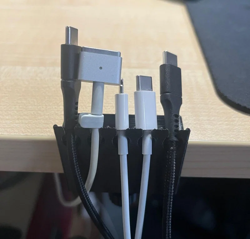 Mẫu kẹp giữ dây cáp nhỏ gọn, tiện lợi cho không gian làm việc của bạn. Sản phẩm hỗ trợ giữ 5 sợi cáp đường kính 6mm, phù hợp với mặt bàn dày từ 20-30mm. Thiết kế tối ưu, in nhanh chỉ trong 40 phút mà không cần support.