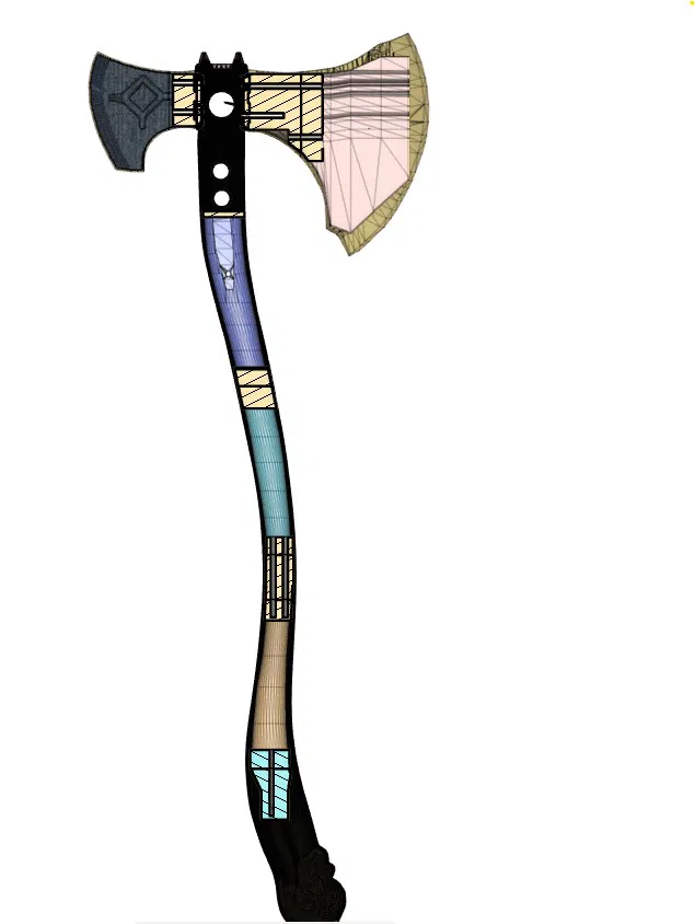 Phiên bản cải tiến từ mẫu rìu Leviathan của Oddworks và SlurpeeMachine. Thiết kế được gia cố thêm các chốt và thanh cố định để đảm bảo độ chắc chắn tối đa. Phù hợp cho những ai muốn tự in một món vũ khí game chất lượng.