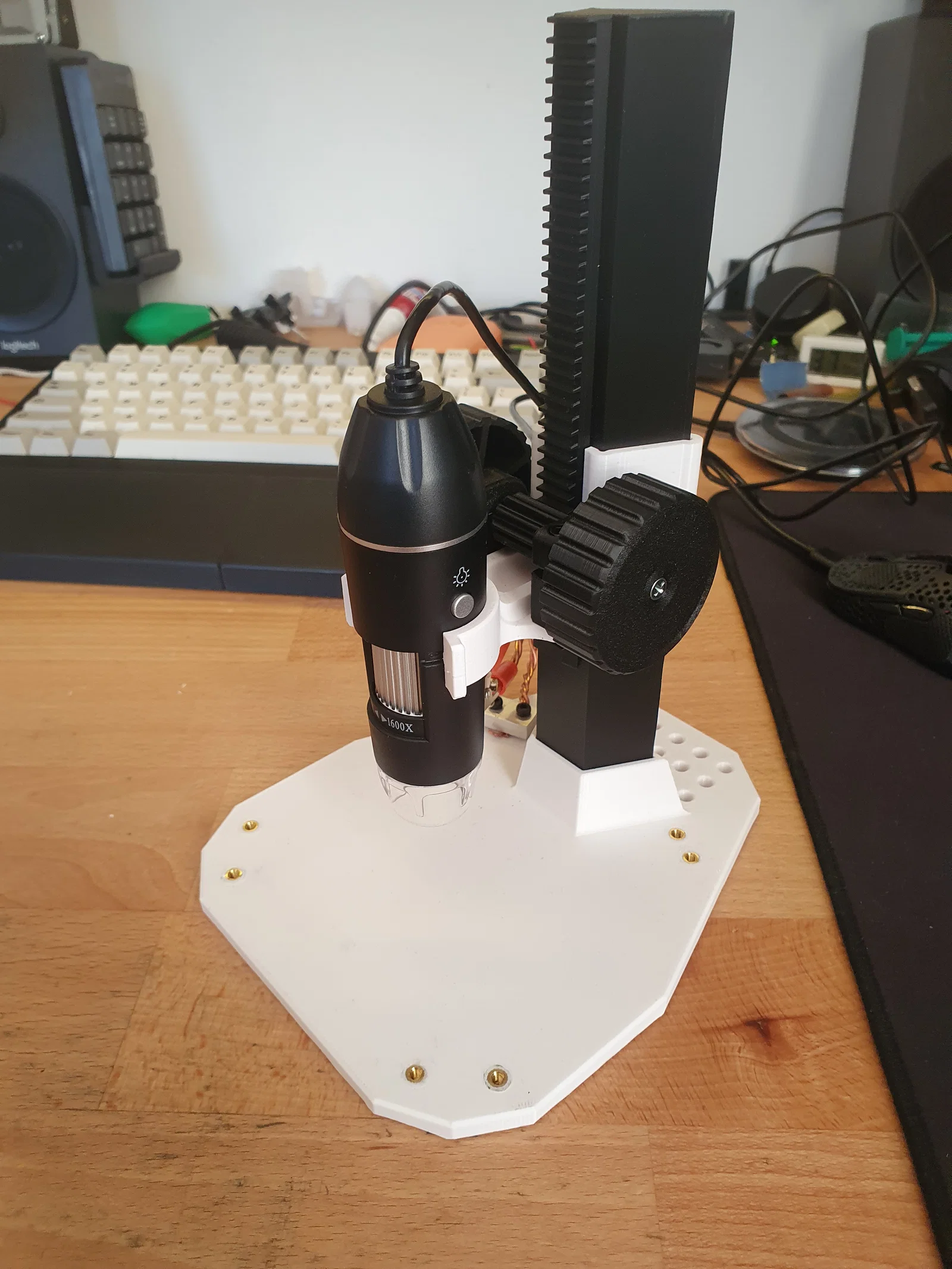 Đây là bản cải tiến từ mẫu chân đế kính hiển vi USB giá rẻ thường thấy trên các trang thương mại điện tử. Thiết kế này giúp khắc phục tình trạng rung lắc, tăng độ cứng cáp và chính xác hơn cho kính hiển vi của bạn.