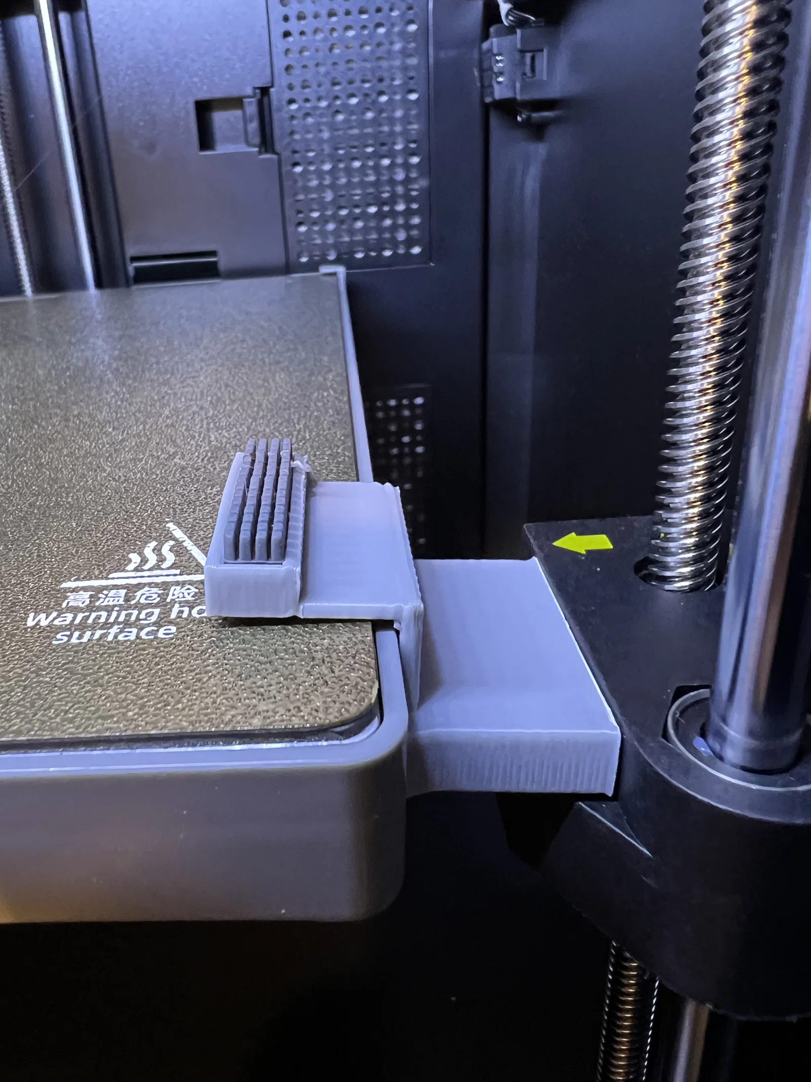 Đây là thiết bị gạt đầu phun (nozzle wiper) dành cho máy FF AD5M. Phụ kiện này sử dụng miếng gạt của máy Bambu Lab A1 Mini và được gắn trực tiếp vào khung của máy in.