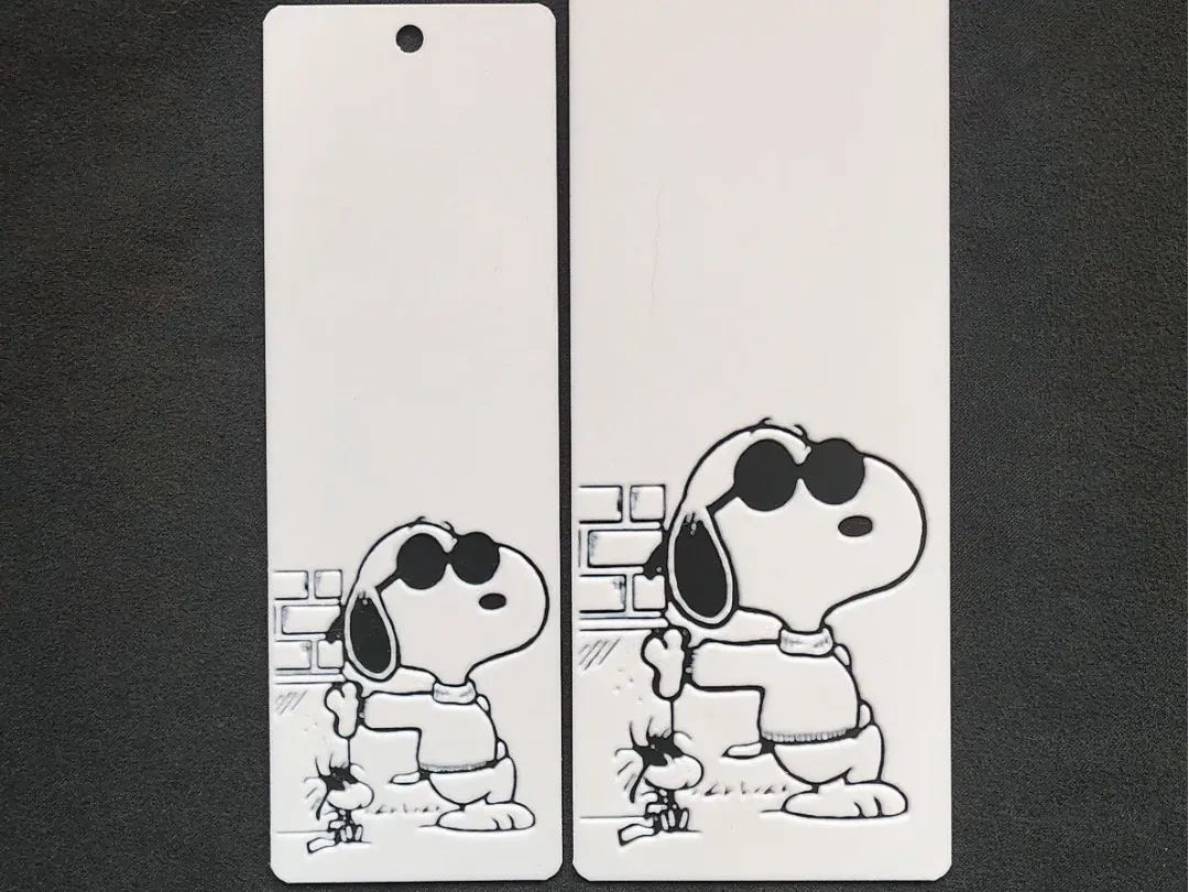 Bộ bookmark hình Snoopy được thiết kế theo công nghệ HueForge. Profile bao gồm hai kích thước 50x150mm và 65x200mm. Vui lòng làm theo hướng dẫn đổi màu nhựa tại layer 10 để đạt kết quả tốt nhất như trong ảnh minh họa.