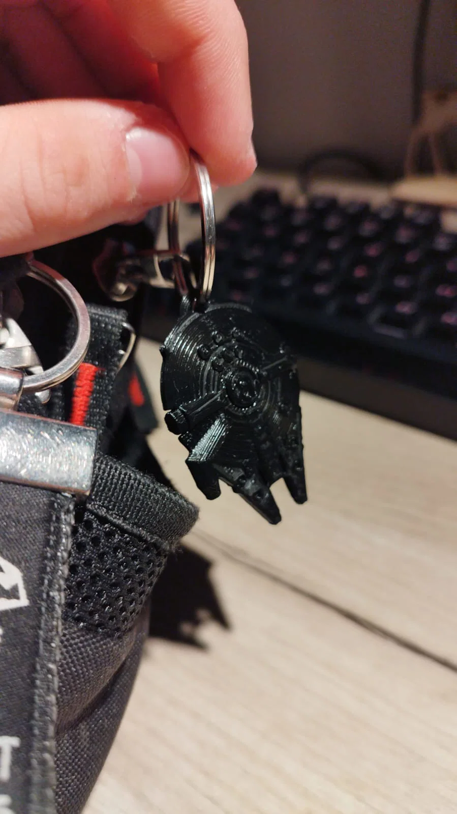 Là một fan cứng của Star Wars, mình đã tự tay thiết kế móc khóa Millennium Falcon. Với layer height 0.18 mm, chiếc phi thuyền huyền thoại này hiện lên cực kỳ chi tiết và sắc nét. Đúng như câu nói: "Du hành qua siêu không gian không giống như đi phun thuốc trừ sâu đâu nhé!"