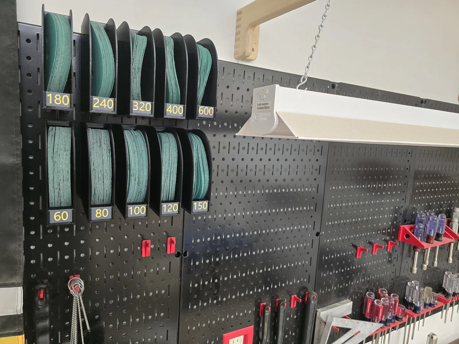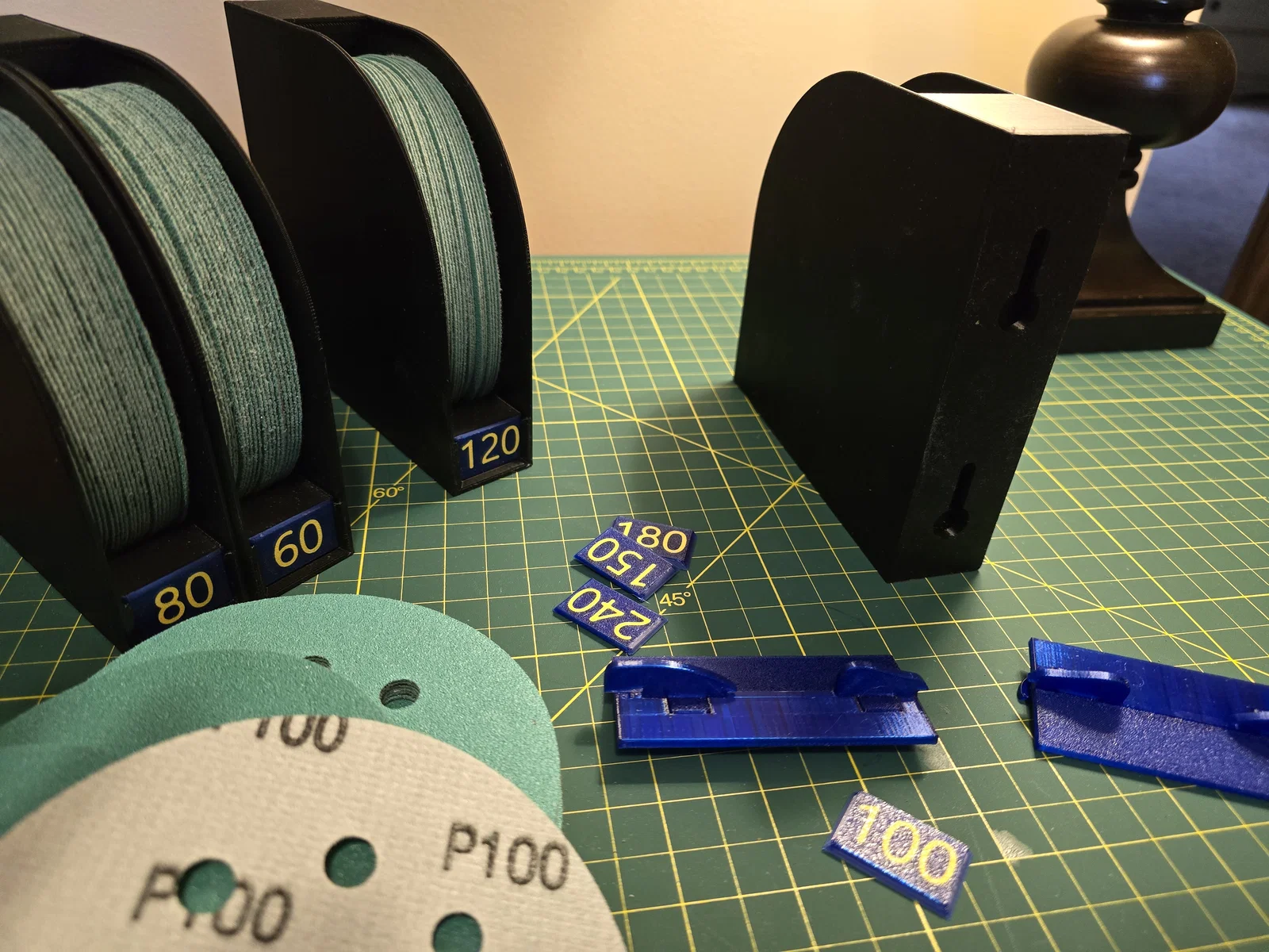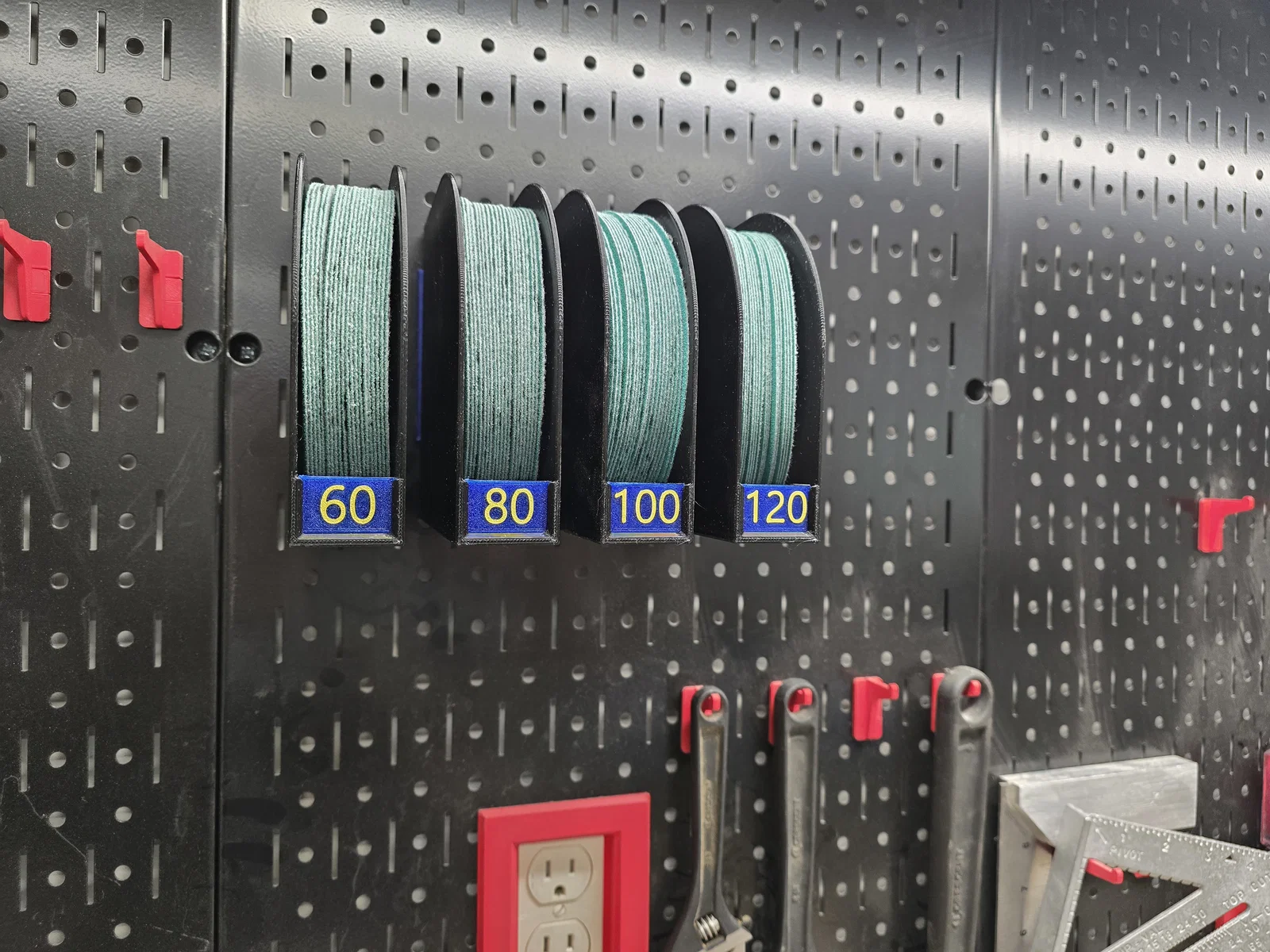 Giờ đây, mình không còn phải lục lọi trong ngăn kéo đầy đĩa nhám để tìm đúng độ nhám mình cần nữa. Chỉ cần liếc mắt là biết ngay kích thước nào sắp hết để kịp bổ sung.
