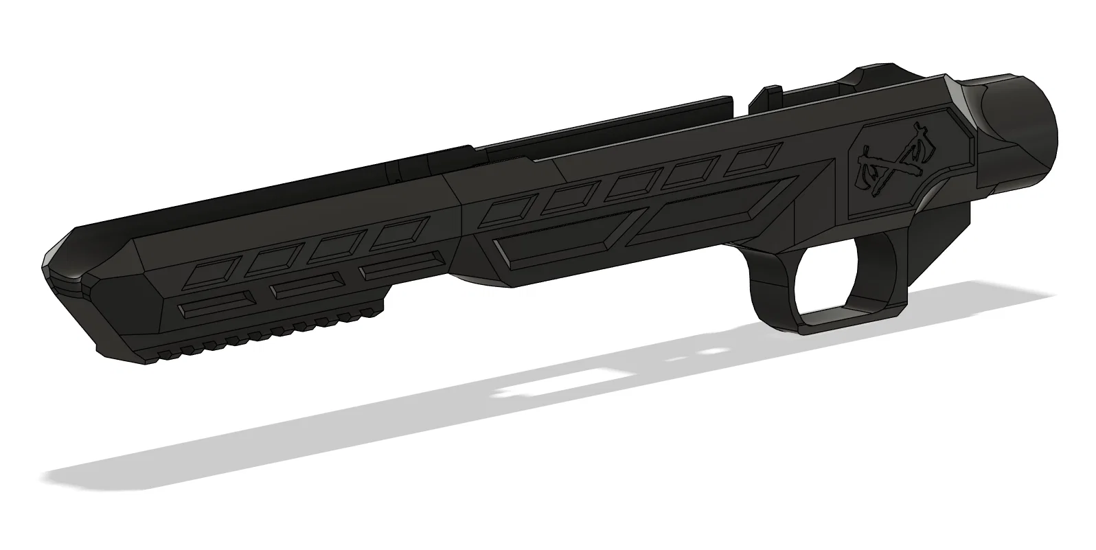 Bản cải tiến của khung thân Apache MKII dành cho Savage MKII. Tối ưu hóa lại hình học, hỗ trợ chuẩn MLOK, tương thích với nút nhả băng đạn EMR và hoàn thiện thẩm mỹ. Đây là linh kiện in 3D, không phải là vũ khí.
